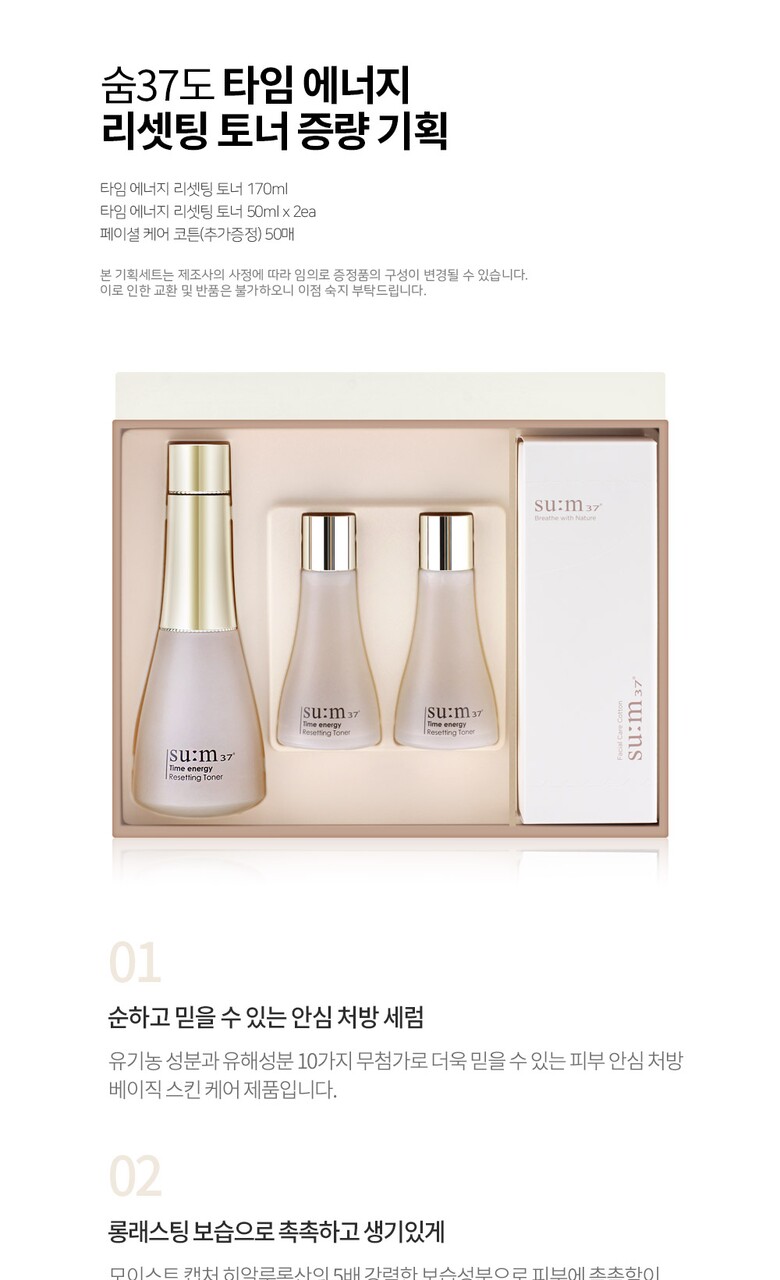 숨37도 타임에너지 리셋팅 토너 추가구성 기획세트 (170ml + 50ml + 50ml)