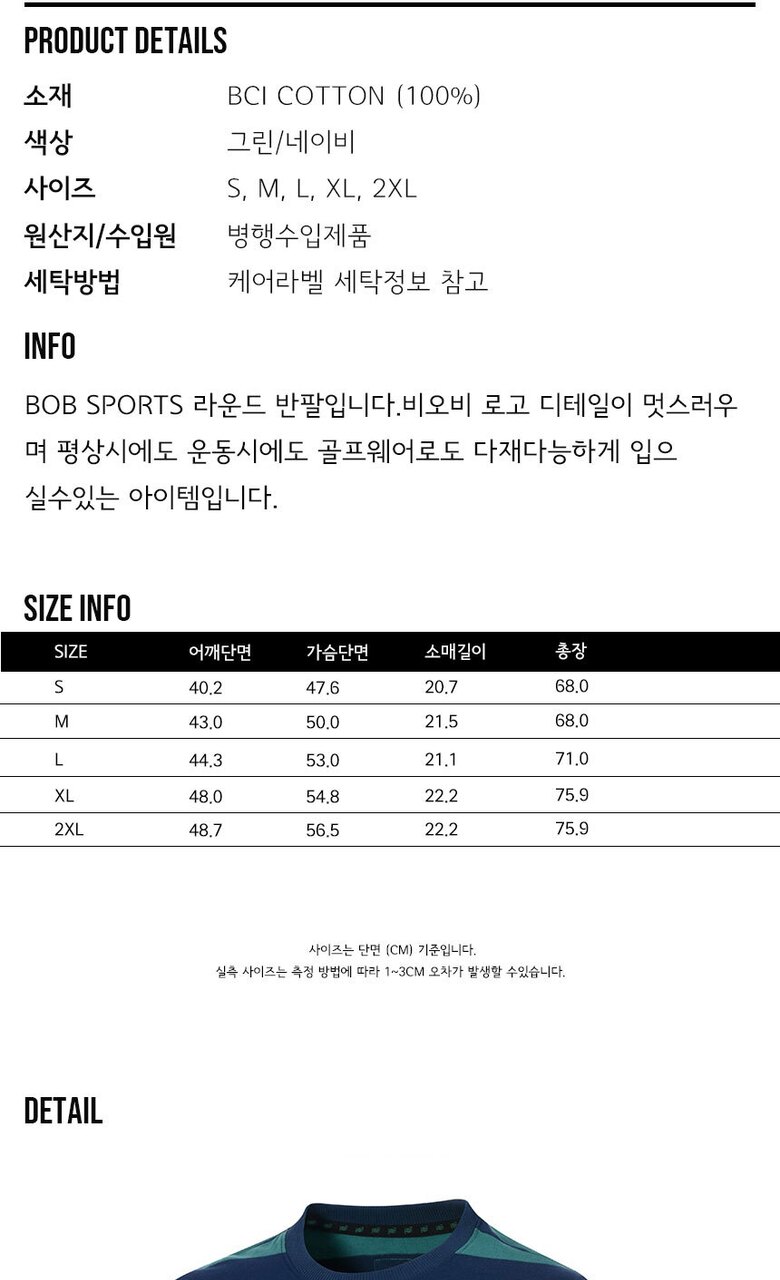 BOB 유니섹스 라운드 티셔츠 BOBTR101D 그린