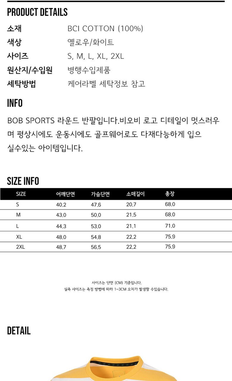 BOB 유니섹스 라운드 티셔츠 BOBTR101D 옐로우
