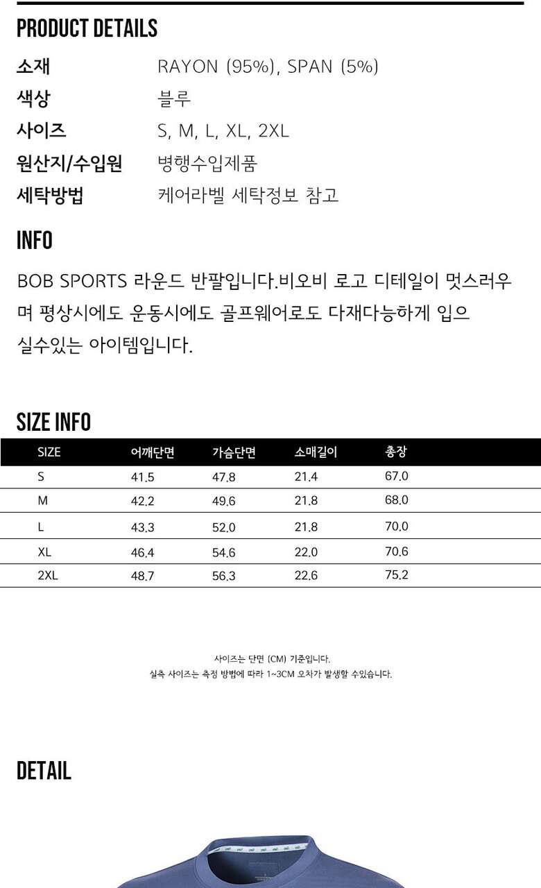 BOB 유니섹스 라운드 티셔츠 BOBTR105-1D 블루