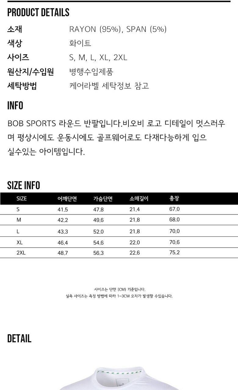 BOB 유니섹스 라운드 티셔츠 BOBTR105-1D 화이트