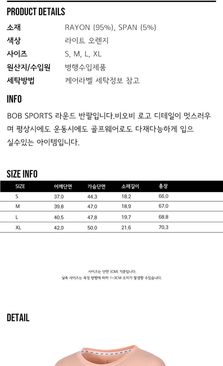 BOB 우먼스 라운드 티셔츠 BOBTR504-3D 라이트 오렌지