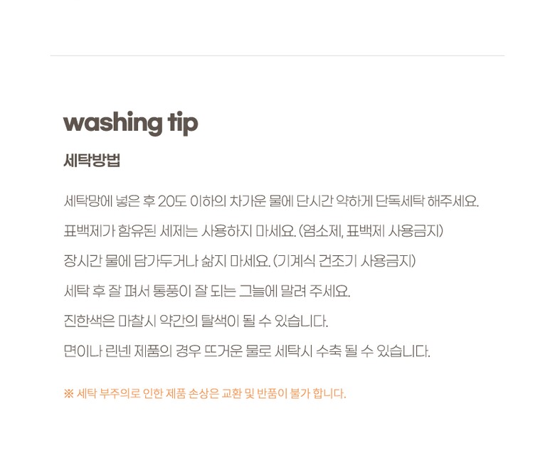 7. 세탁방법 및 취급시 주의사항 상세페이지 참조