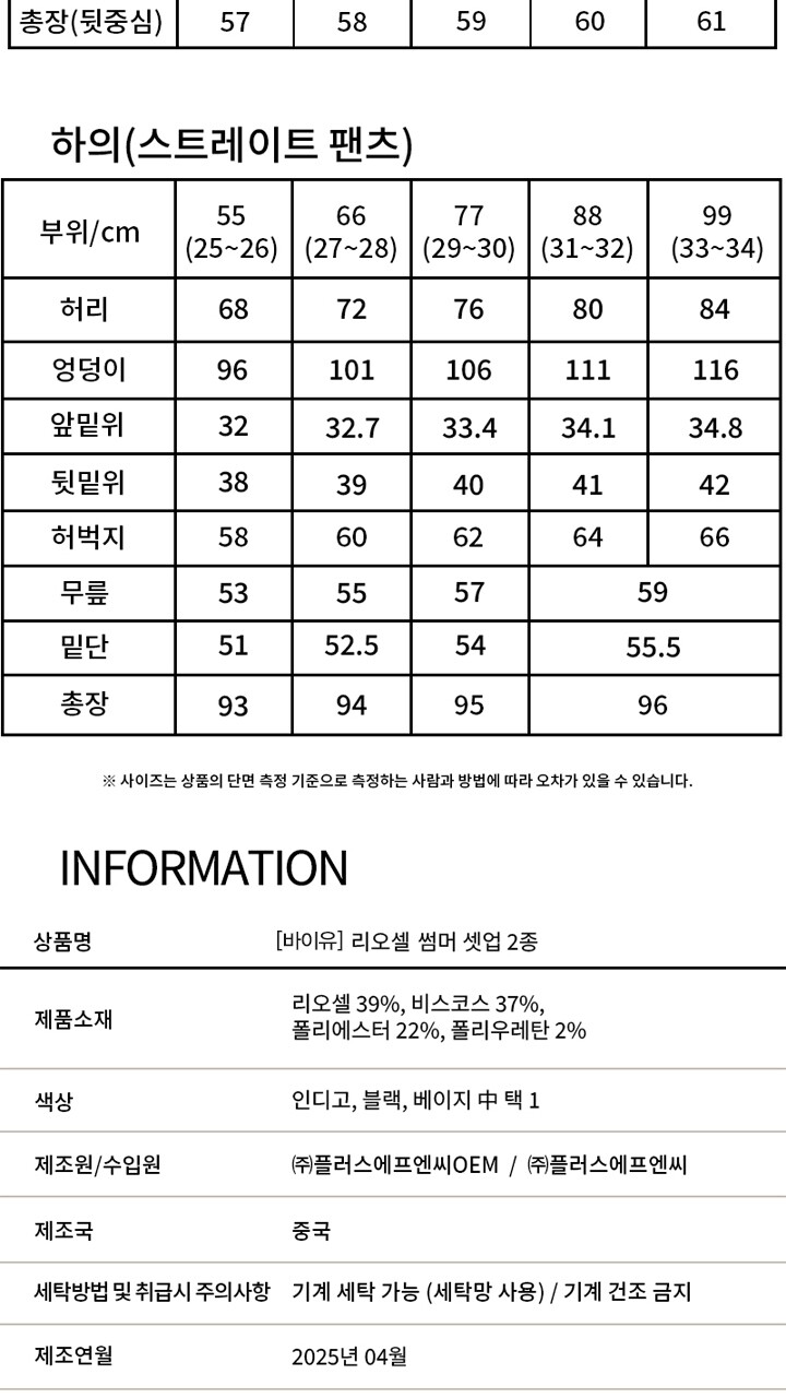1. 제품 소재 (섬유의 조성 또는 혼용률을 백분율로 표시, 기능성인 경우 성적서 또는 허가서) | 리오셀 39% 비스코스37% 폴리에스터 22% 폴리우레탄 2% |