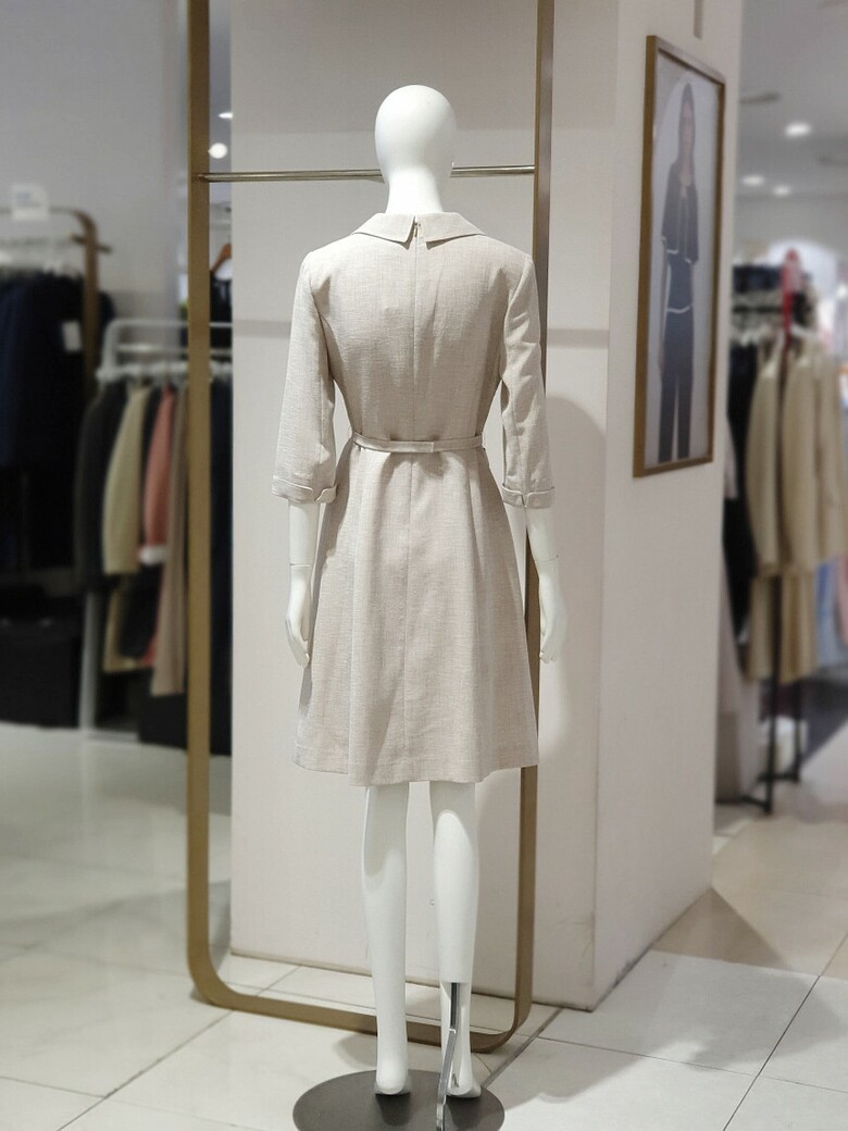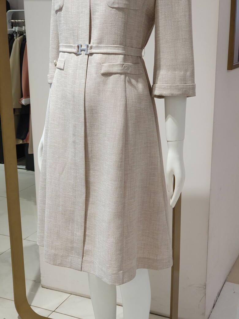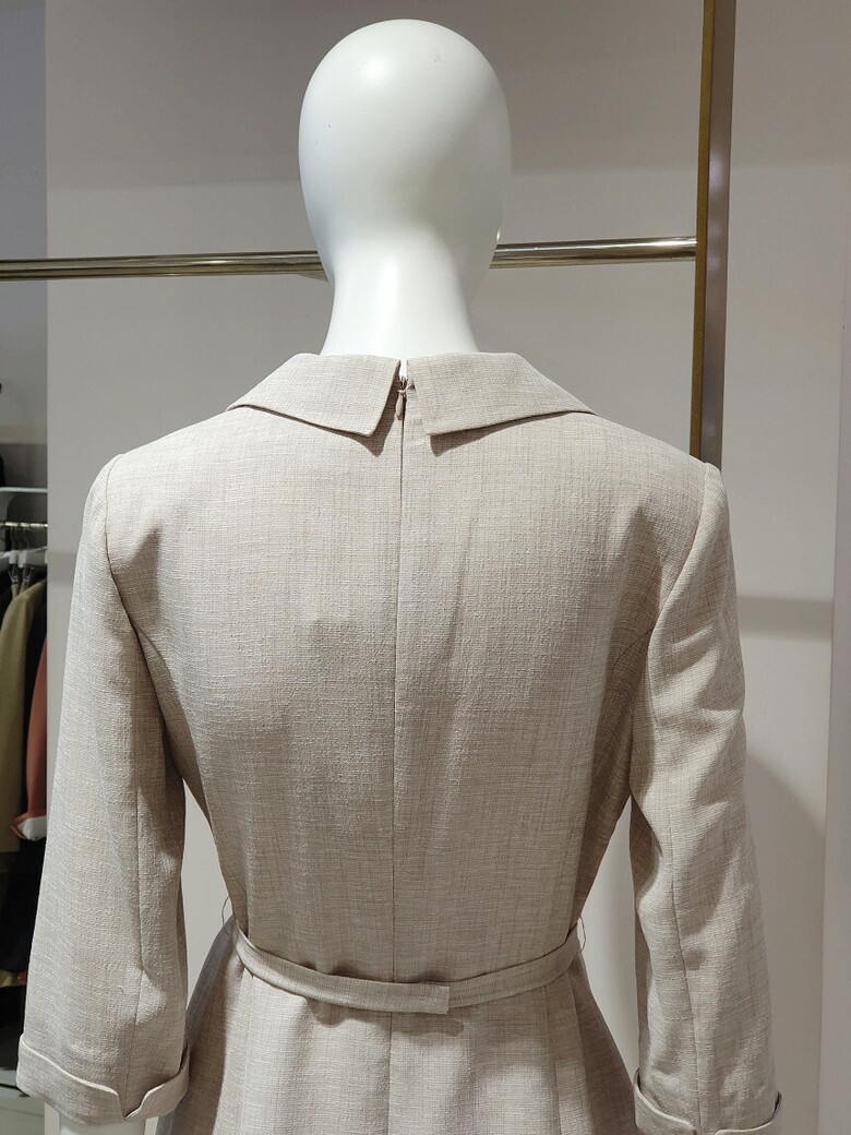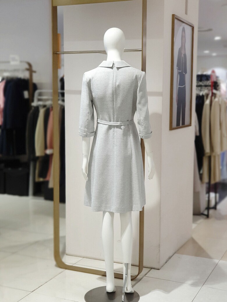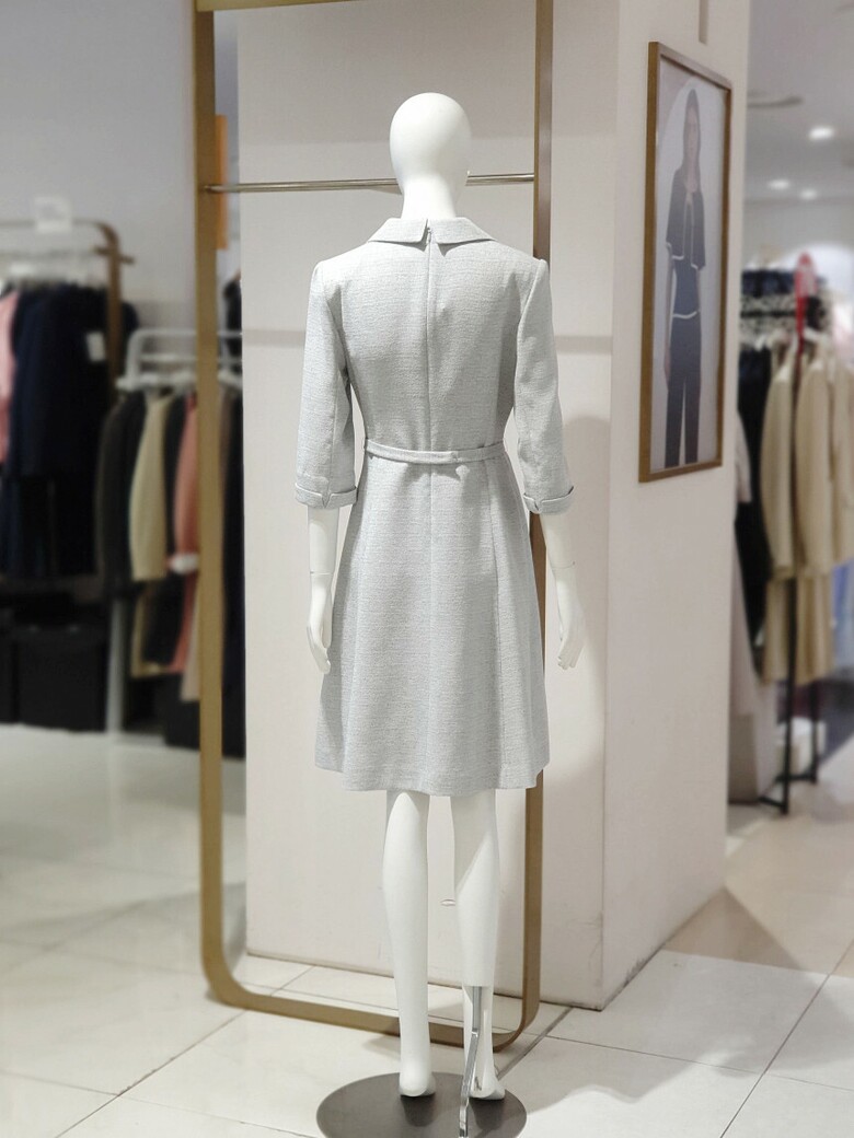 카라 넥 라인으로 포멀한 무드를 즐길 수 있는 A 라인 원피스입니다.