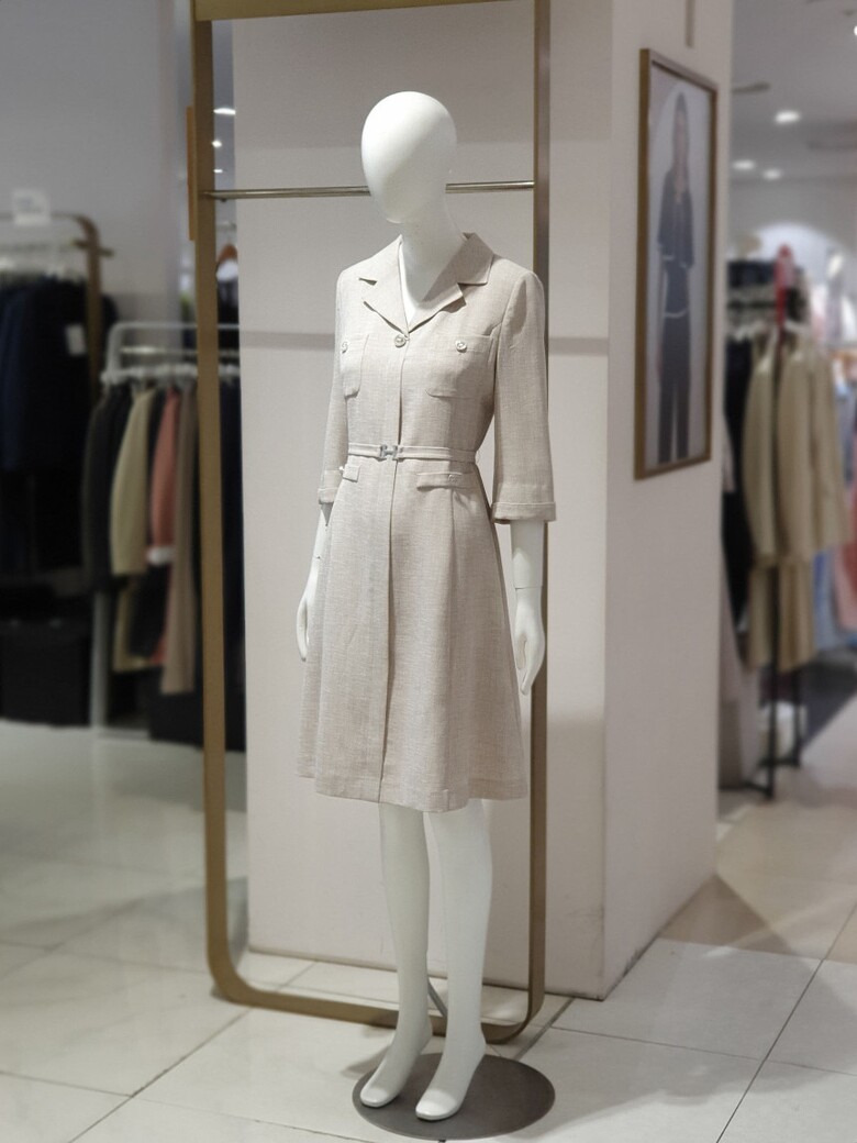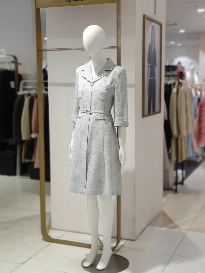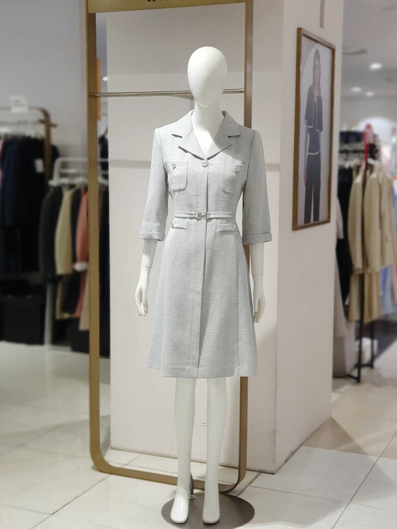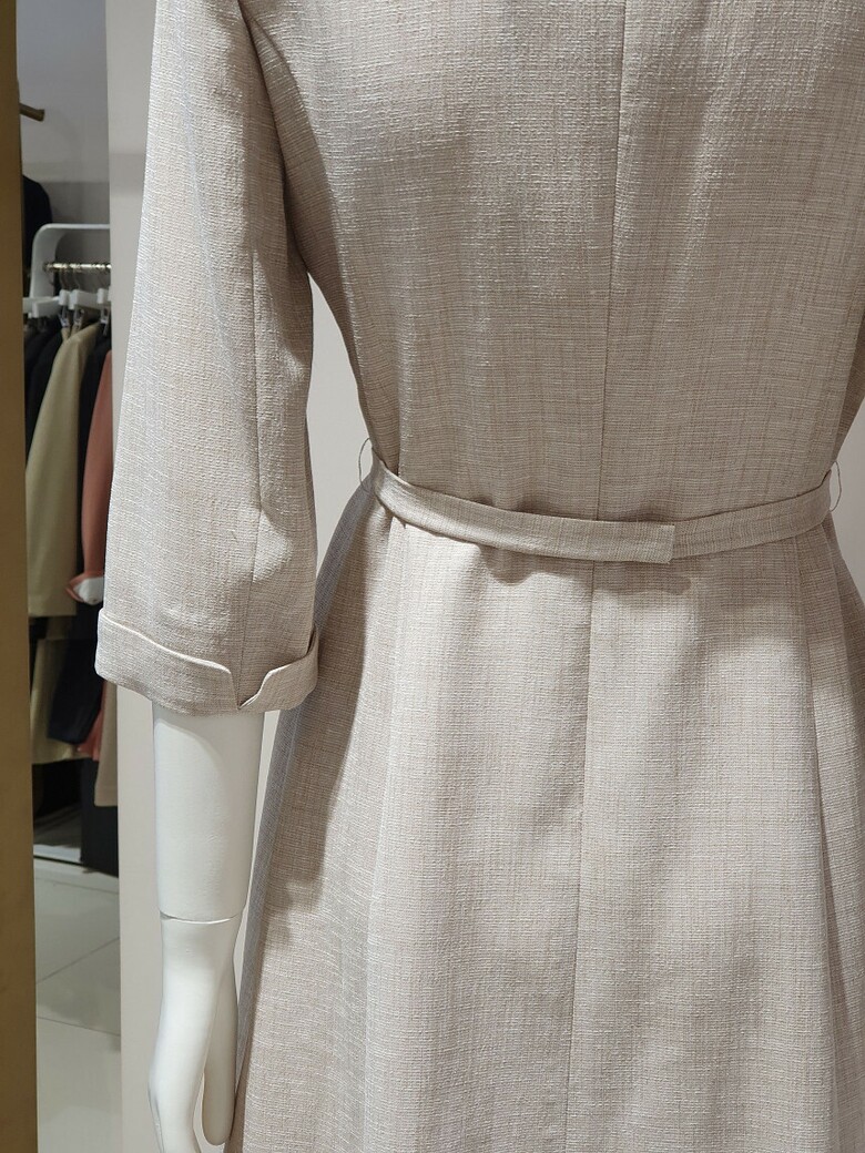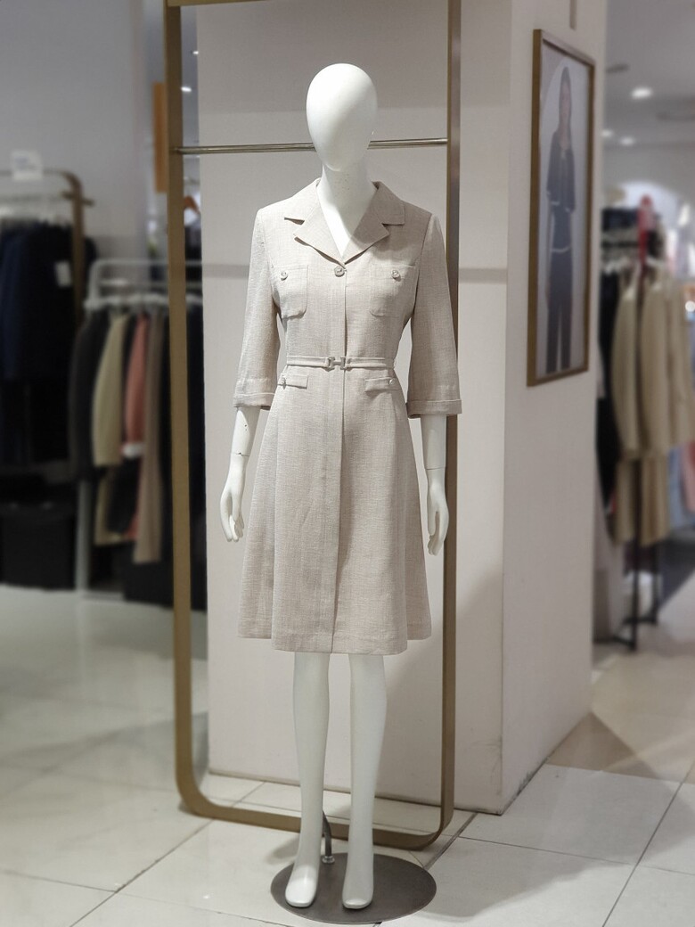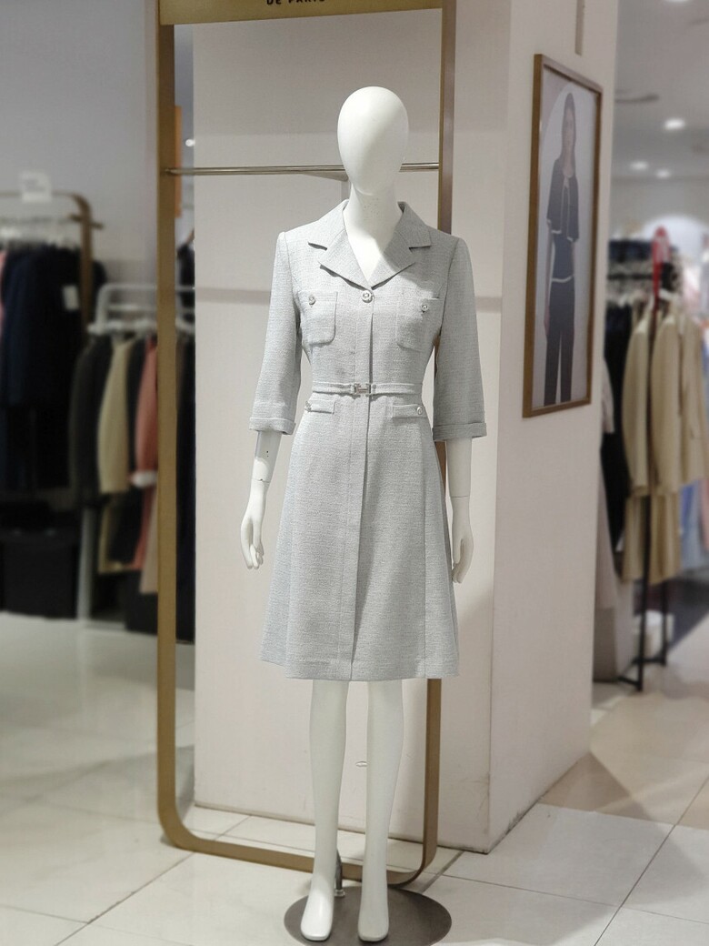 카라 넥 라인으로 포멀한 무드를 즐길 수 있는 A 라인 원피스입니다.