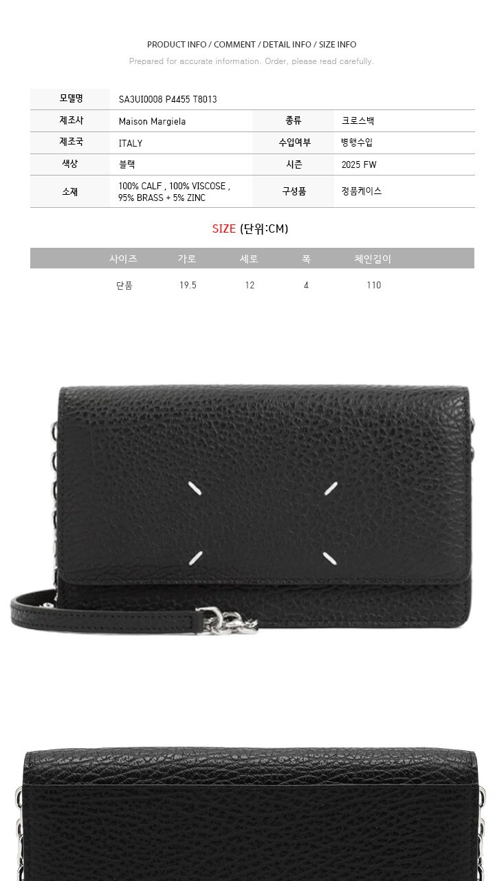 마르지엘라 25FW 스티치 체인 월렛 크로스백 블랙 SA3UI0008 P4455 T8013