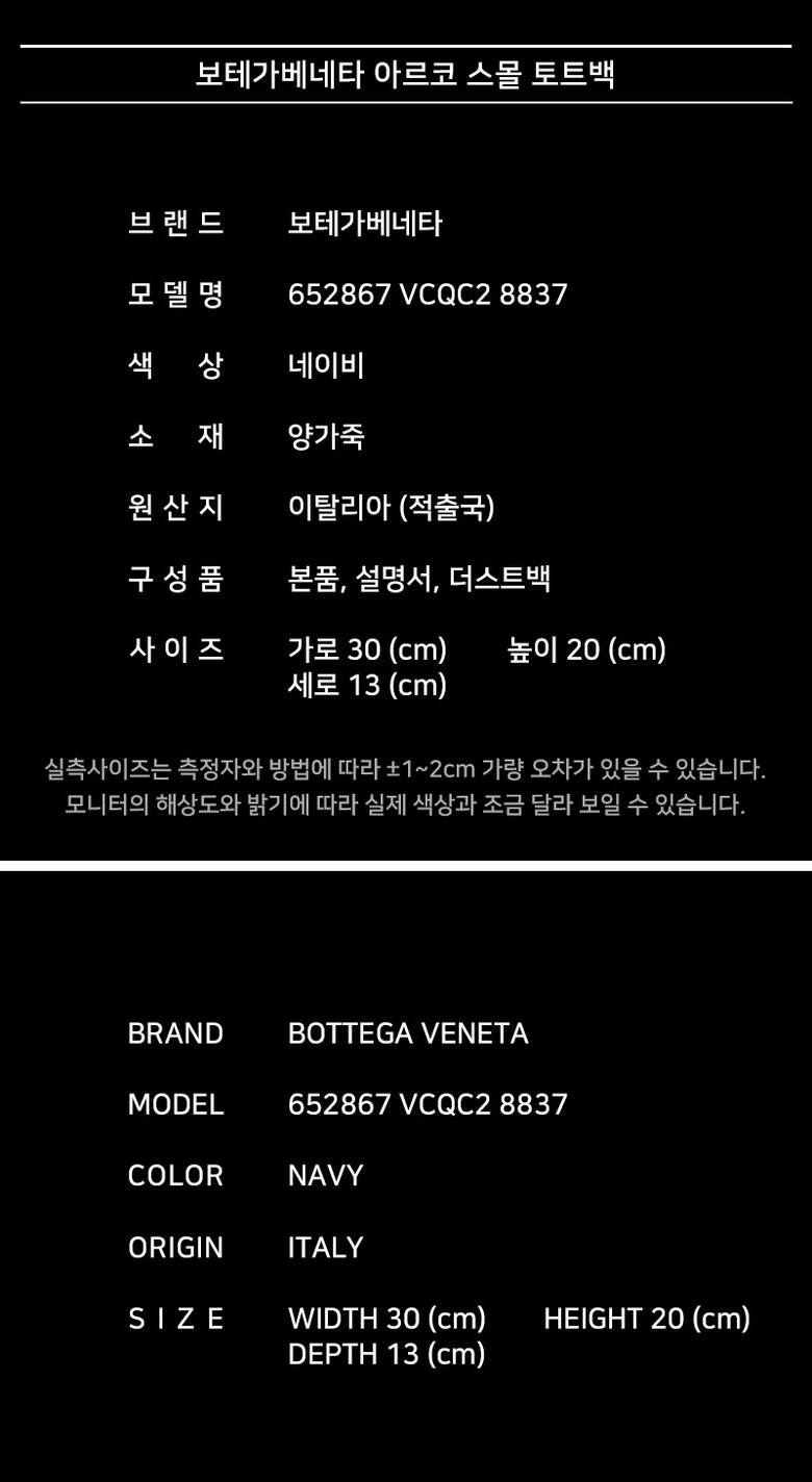 [명품] 보테가베네타 아르코 스몰 토트백 네이비 652867 VCQC2 8837