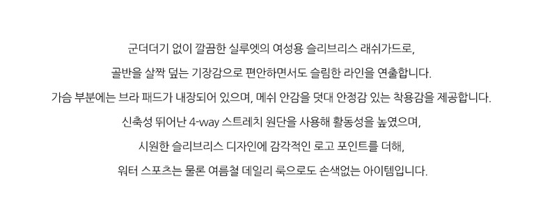 | 1. 제품 소재 (섬유의 조성 또는 혼용률을 백분율로 표시, 기능성인 경우 성적서 또는 허가서) | 겉감: 82%폴리에스터 / 18%폴리우레탄 / 안감: 91%폴리에스터, 9%폴리우레탄 |