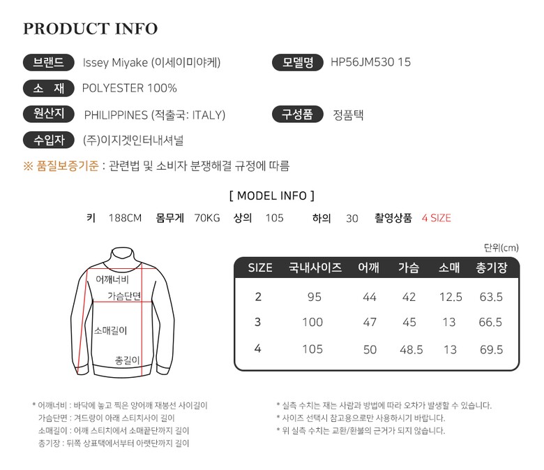 | 1. 제품 소재 (섬유의 조성 또는 혼용률을 백분율로 표시, 기능성인 경우 성적서 또는 허가서) | 상세페이지 참조 |