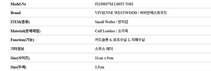 [명품] 비비안웨스트우드 51150037M L003T N401 스무스 레더 반지갑