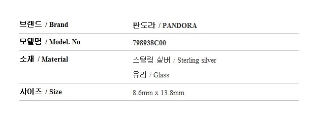 [명품] 판도라 798938C00 웨이비 다크 오션 블루 무라노 글라스 실버 참