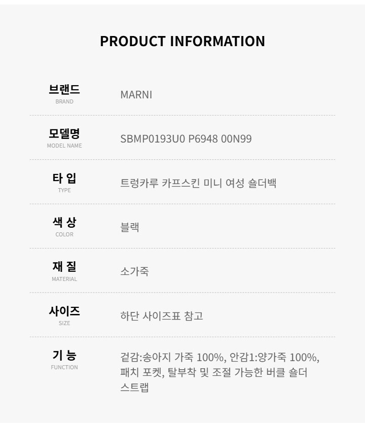 #리본즈코리아 #SBMP0193U0P694800N99 #[명품] #마르니 #SBMP0193U0 #P6948 #00N99 #트렁카루 #카프스킨 #미니 #숄더백 #여성 #가방/핸드백 #숄더백/호보백