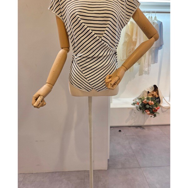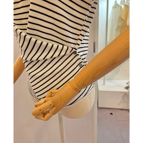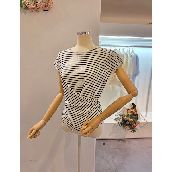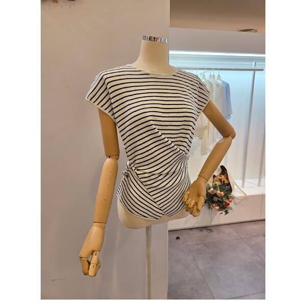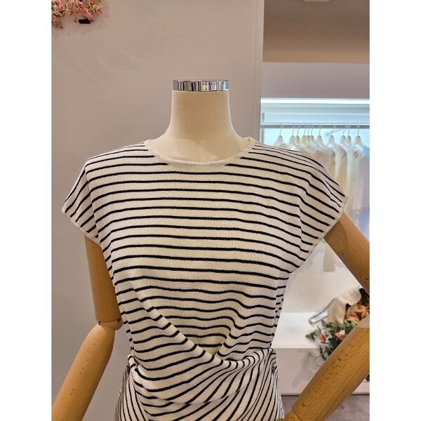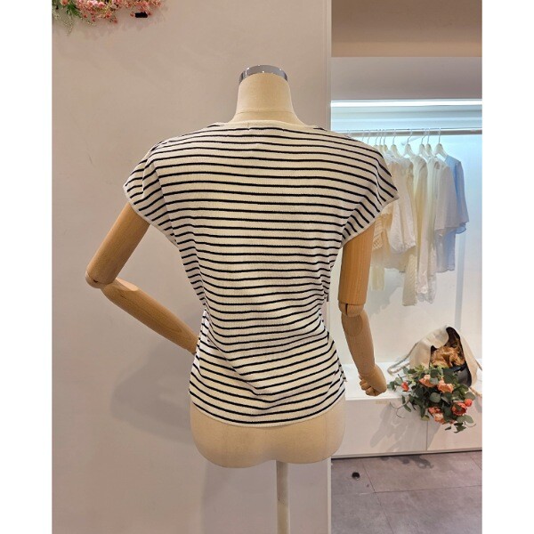 CP5WKT39_캡소매 언발 스트라이프 니트