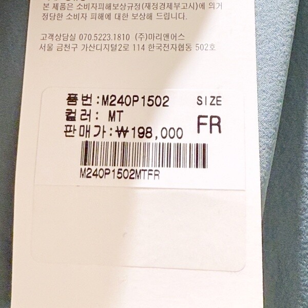 | 9. A/S 책임자와 전화번호 | AS 및 기타 문의 사항은 해당 매장 [이은자,053-254-5114] 으로 전화주시면 감사하겠습니다. |