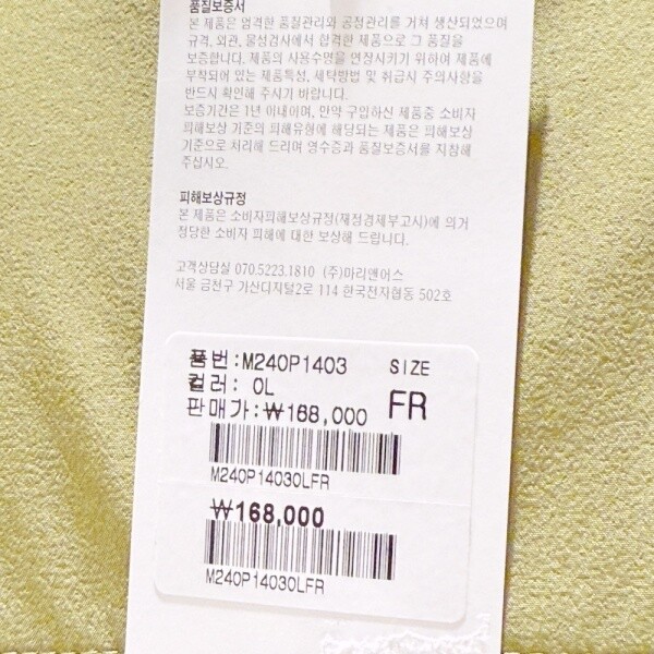 | 9. A/S 책임자와 전화번호 | AS 및 기타 문의 사항은 해당 매장 [이은자,053-254-5114] 으로 전화주시면 감사하겠습니다. |
