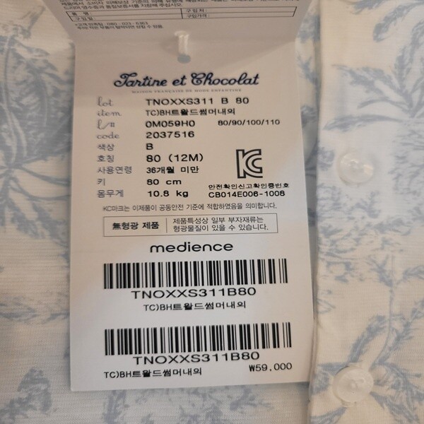 품명 및 모델명 : 신생아백일선물)트왈드썸머내의