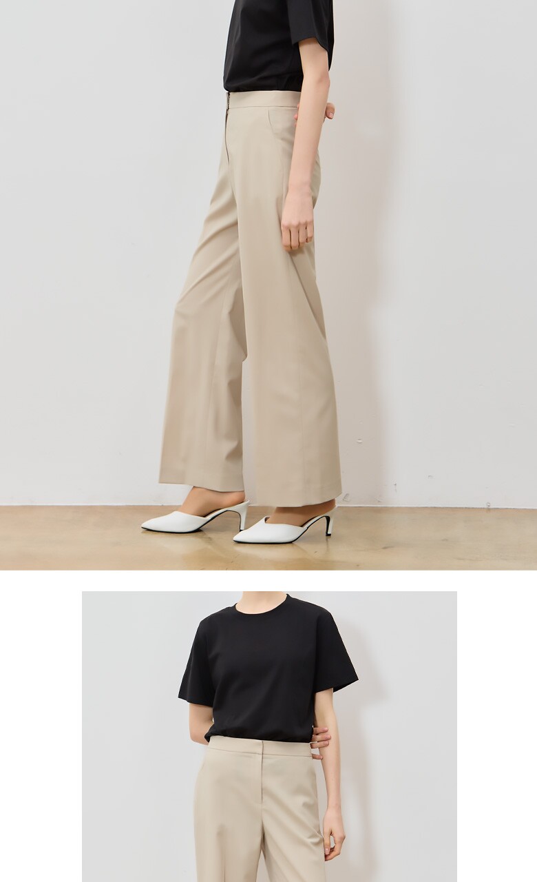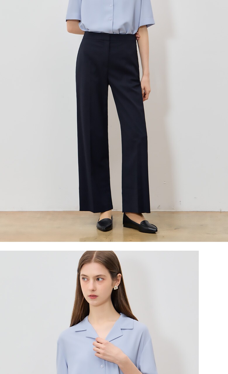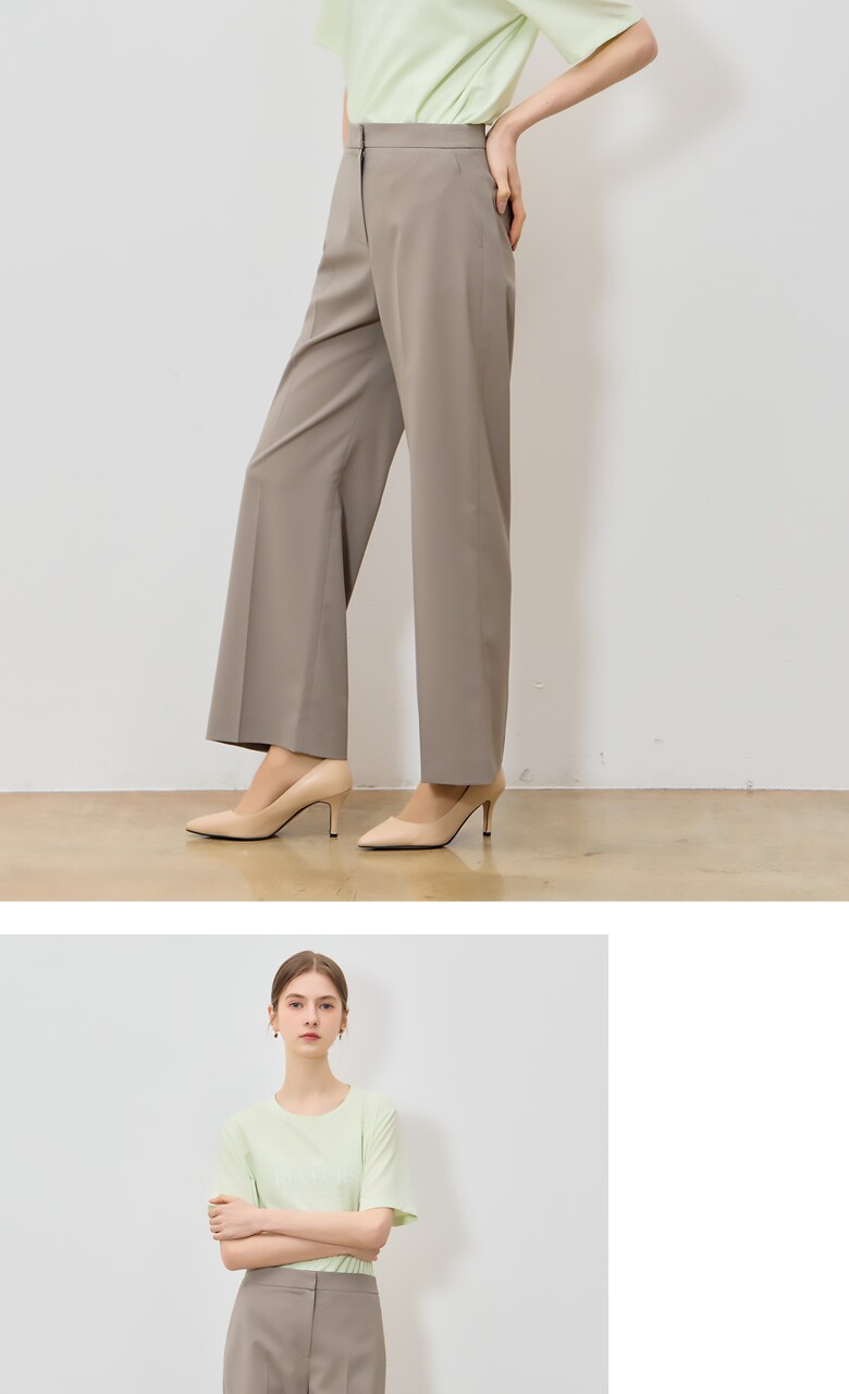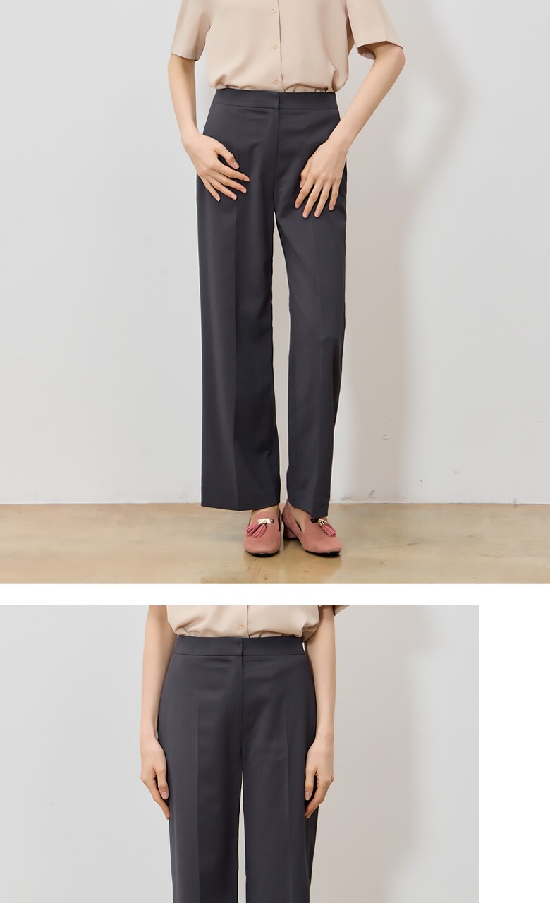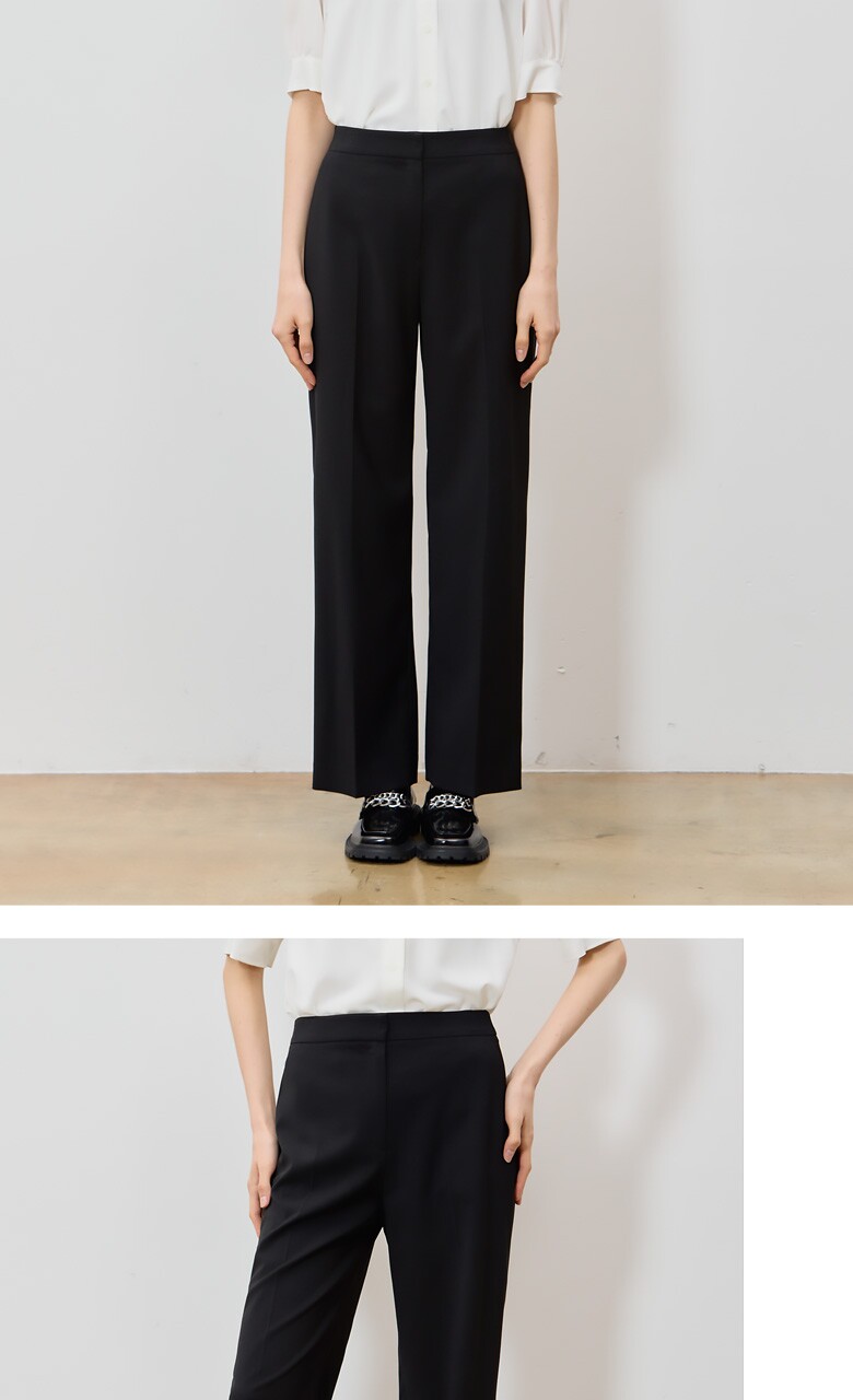 솔리드 컬러에 깔끔한 디자인으로 미니멀한 롱 와이드 팬츠입니다. 브랜드만의 고급 소재를 활용하여 우수한 착용감을 선사합니다. 블라우스와 매치하여 깔끔하고 시원한 오피스룩을 연출할 수 있습니다.