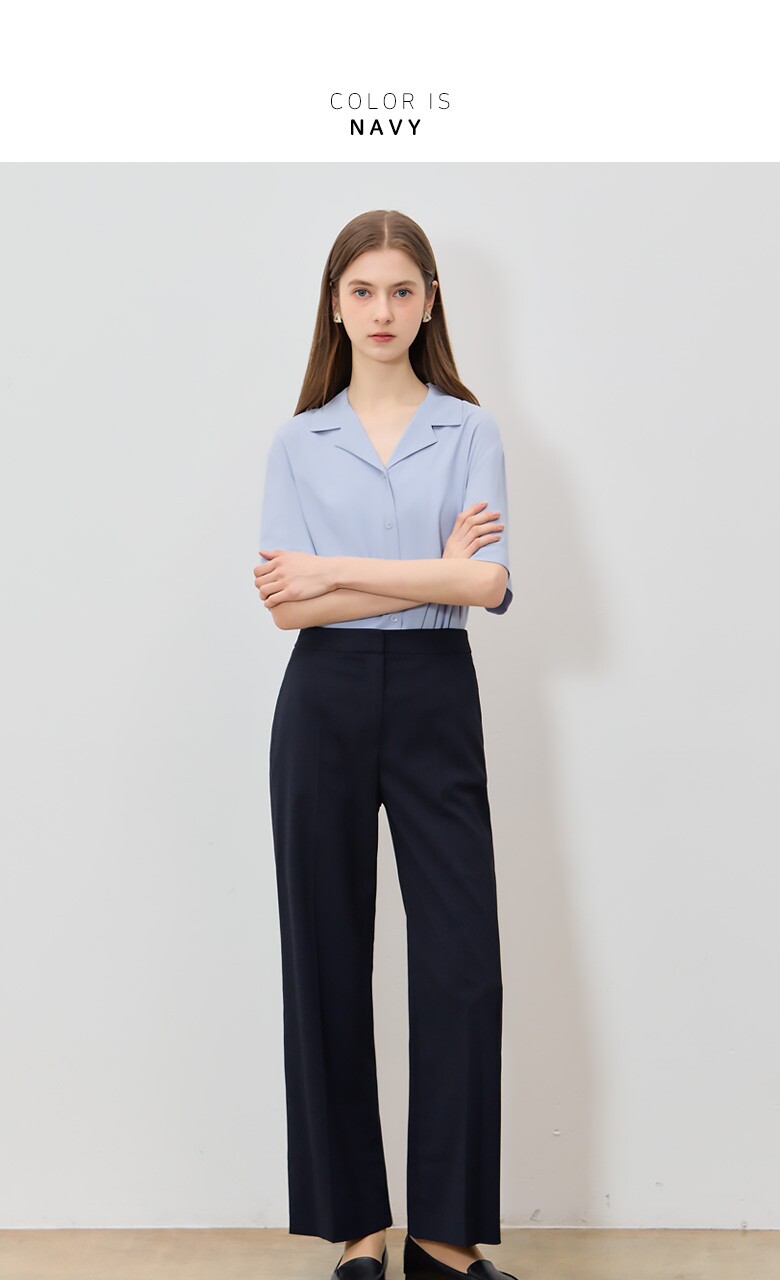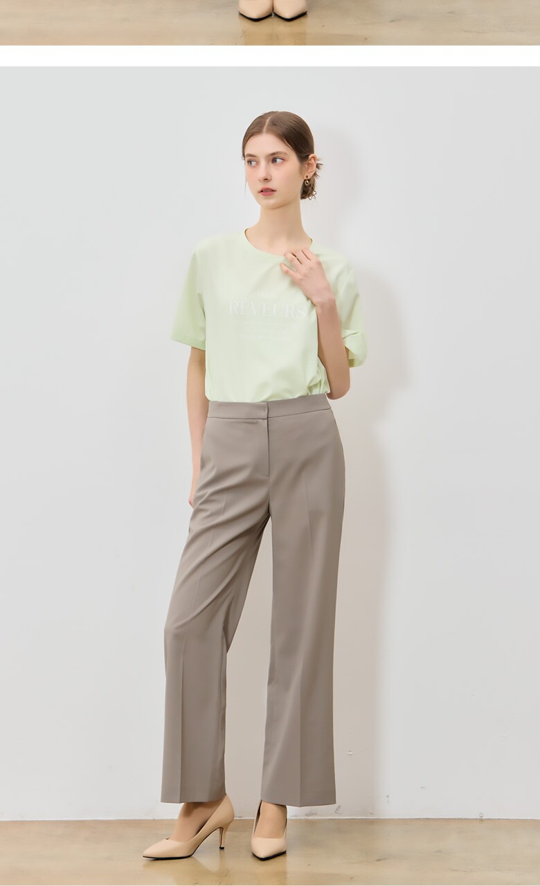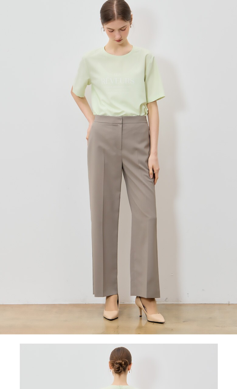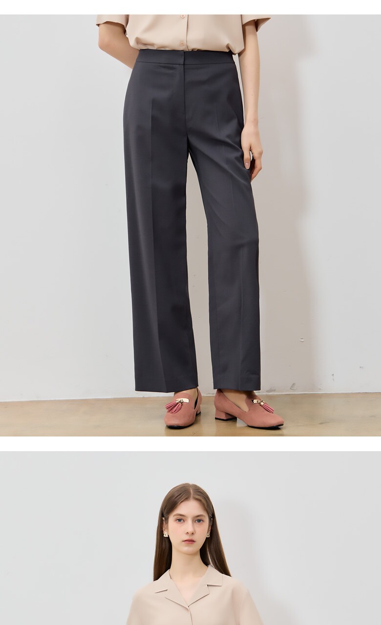 솔리드 컬러에 깔끔한 디자인으로 미니멀한 롱 와이드 팬츠입니다. 브랜드만의 고급 소재를 활용하여 우수한 착용감을 선사합니다. 블라우스와 매치하여 깔끔하고 시원한 오피스룩을 연출할 수 있습니다.