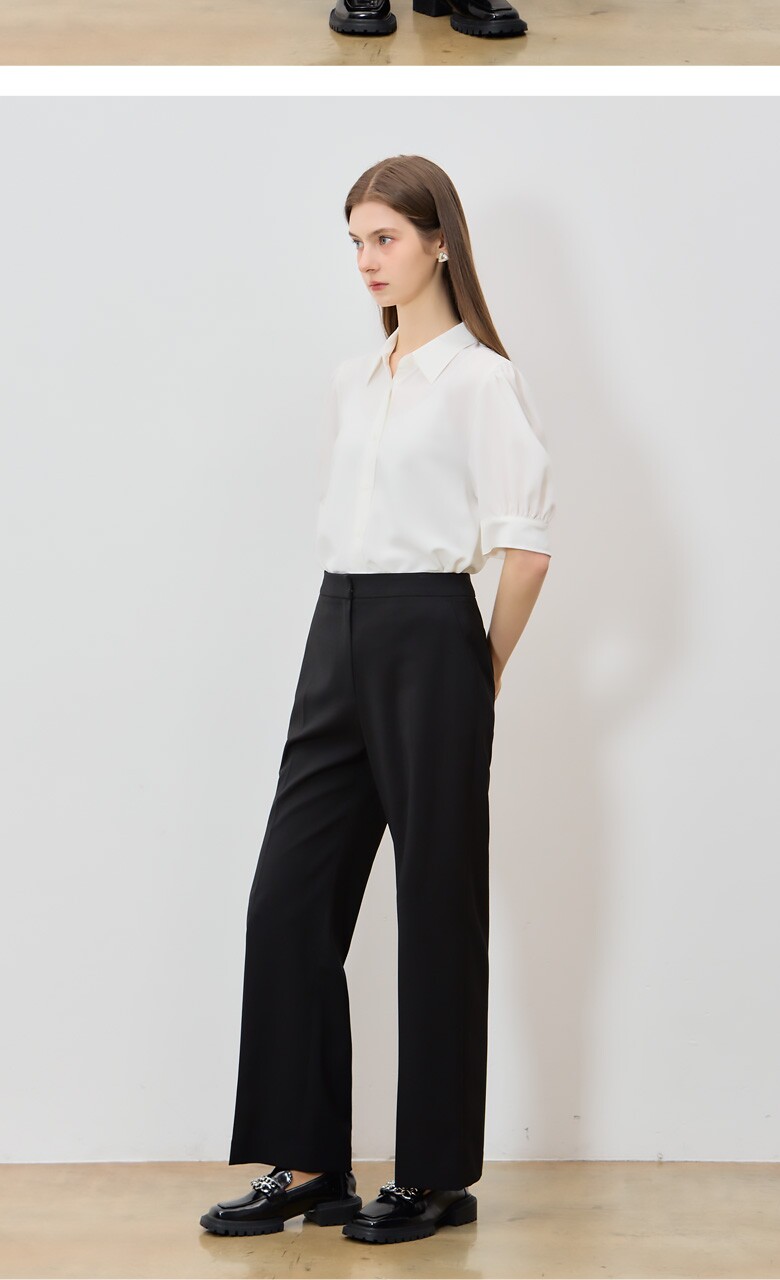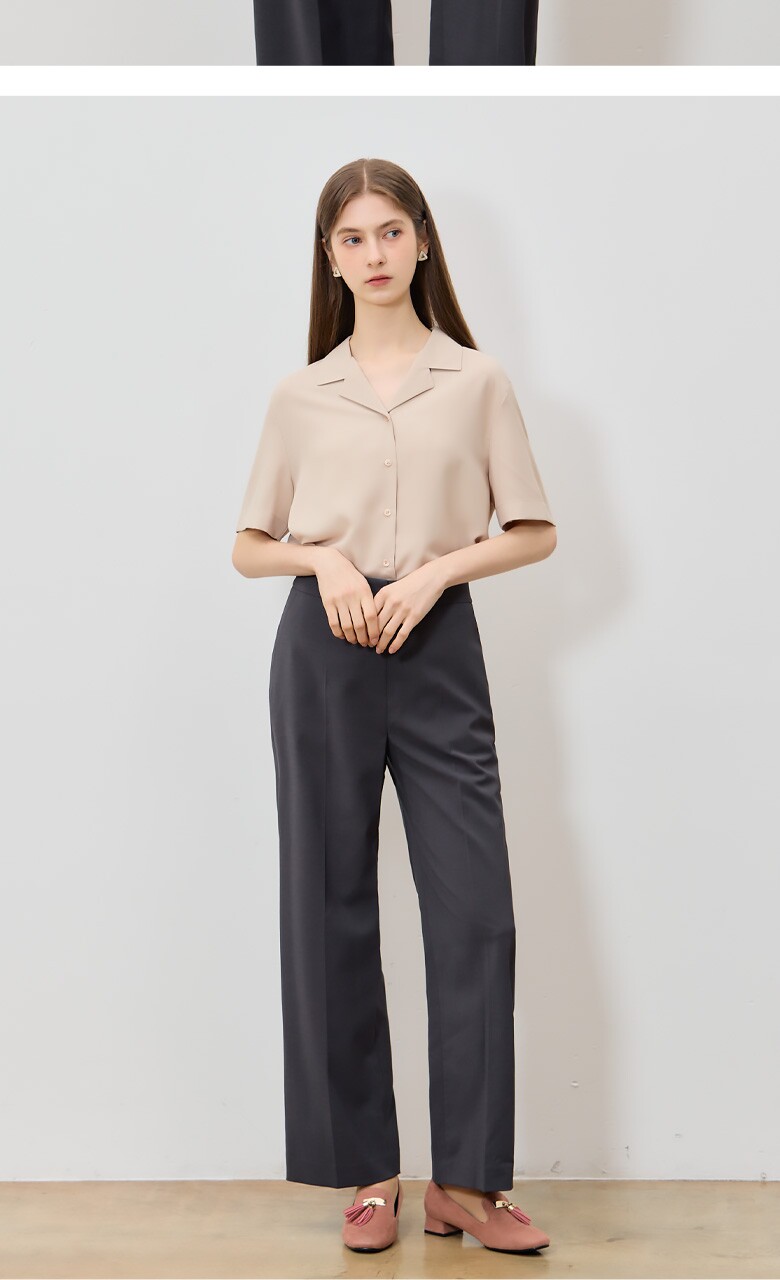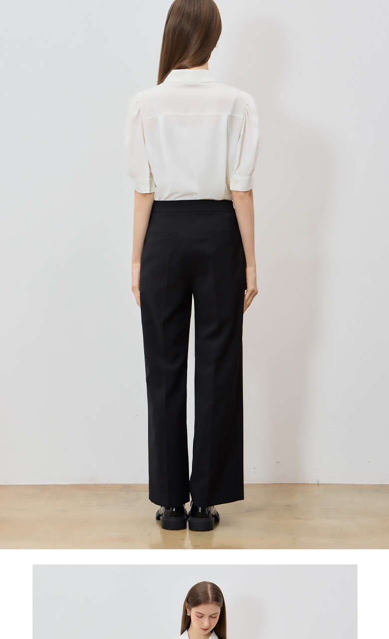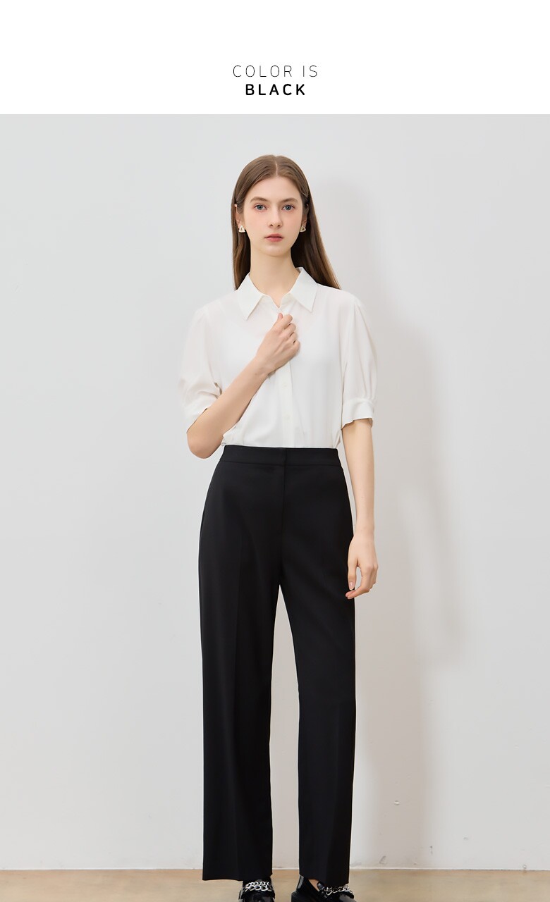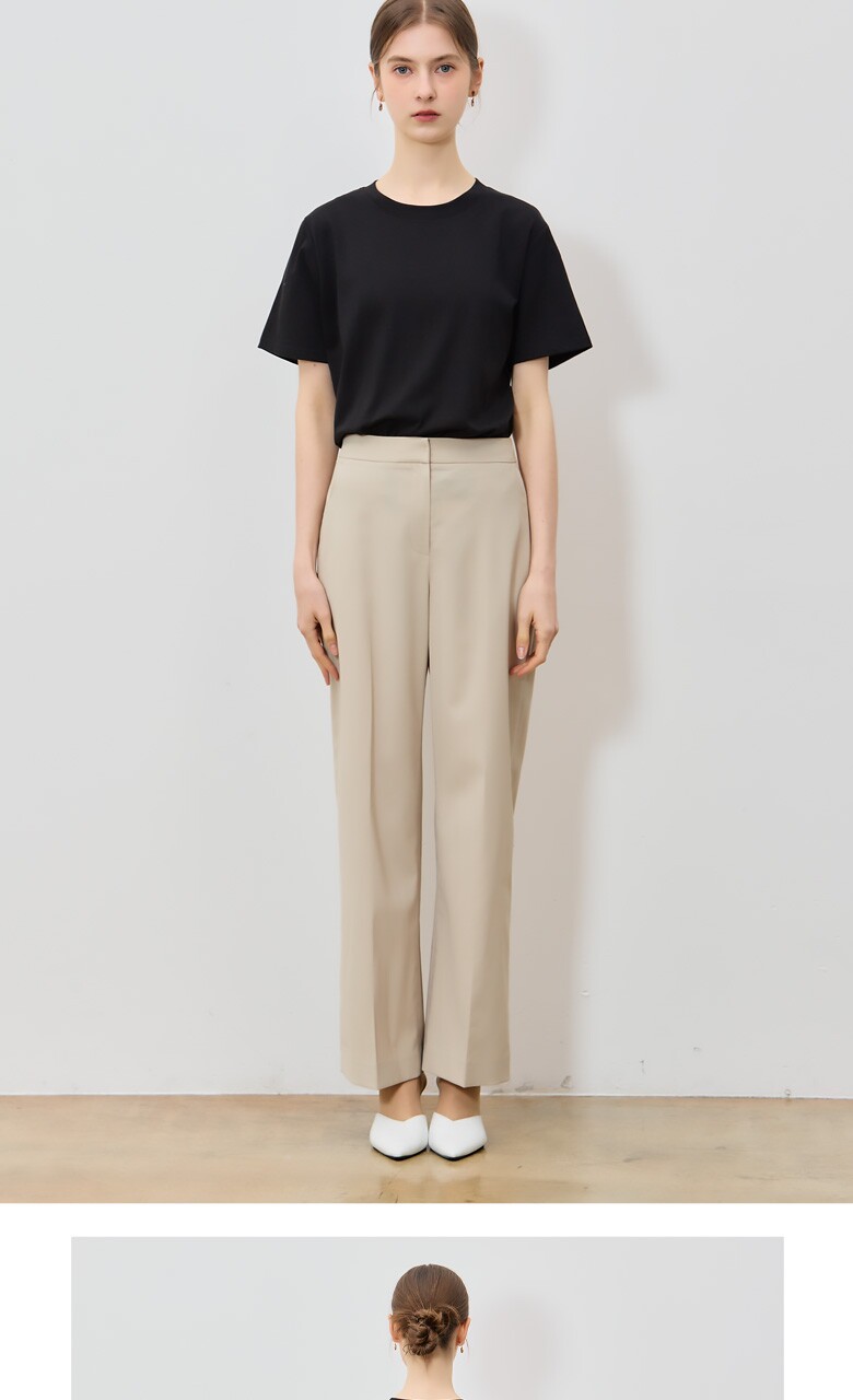 솔리드 컬러에 깔끔한 디자인으로 미니멀한 롱 와이드 팬츠입니다. 브랜드만의 고급 소재를 활용하여 우수한 착용감을 선사합니다. 블라우스와 매치하여 깔끔하고 시원한 오피스룩을 연출할 수 있습니다.