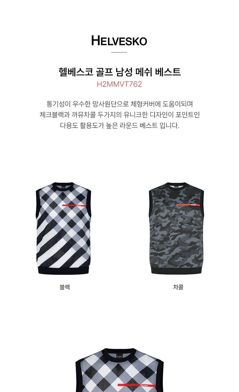 골피아 H2MMVT762 헬베스코 남성 라운드 망사 메쉬 베스트
