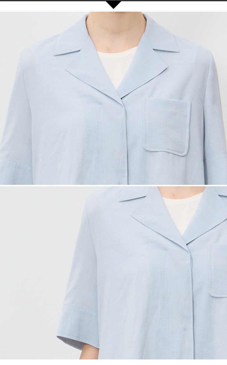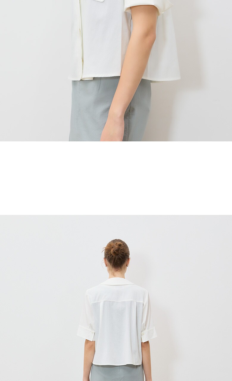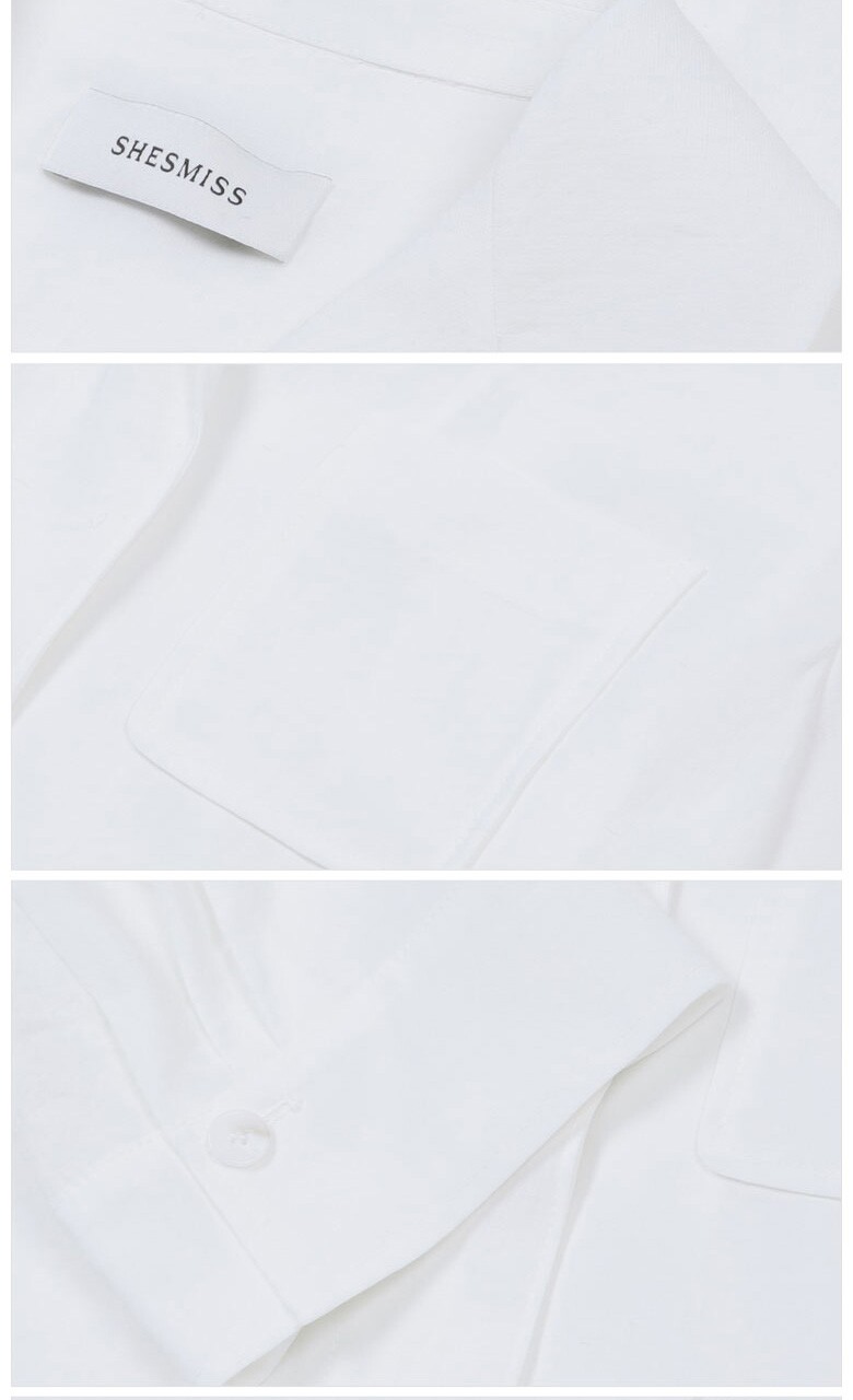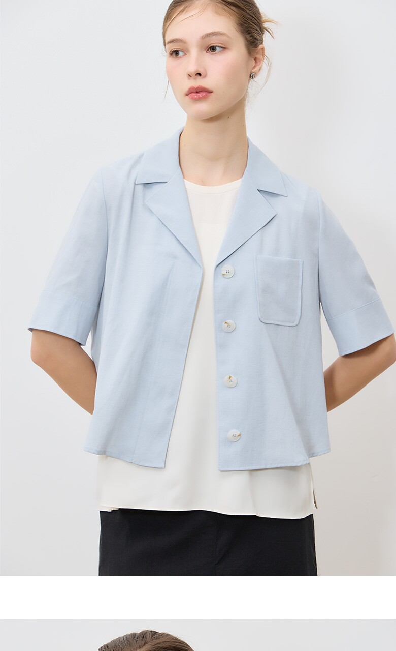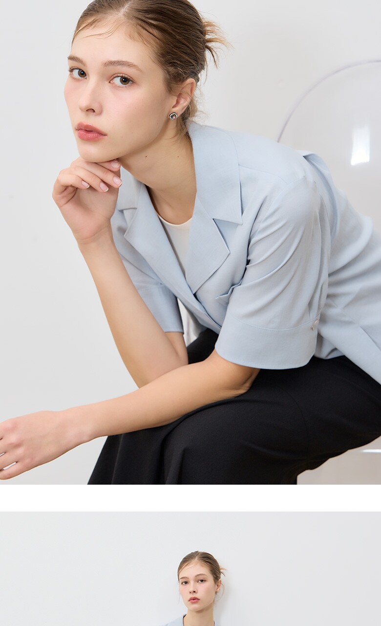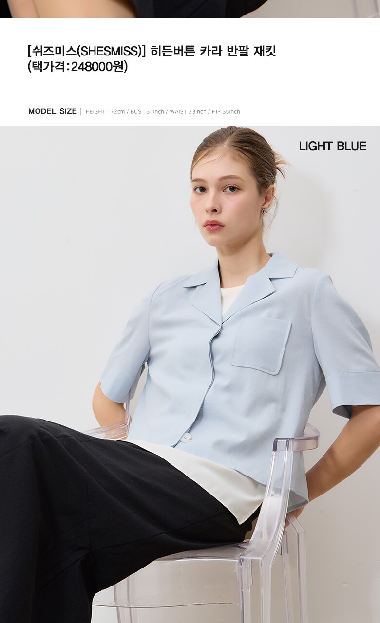 [쉬즈미스(SHESMISS)] 고품격 히든버튼 카라 셔츠형 반팔 재킷 (택가격: 248000원)