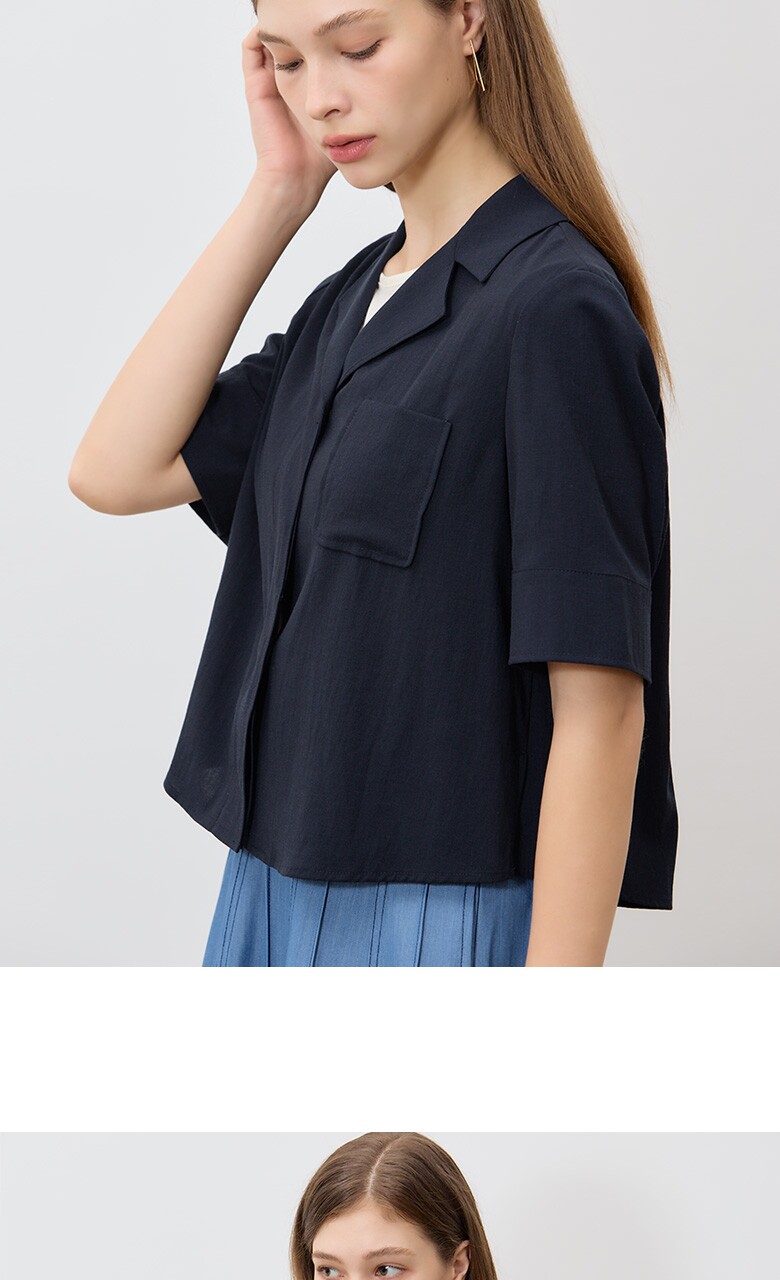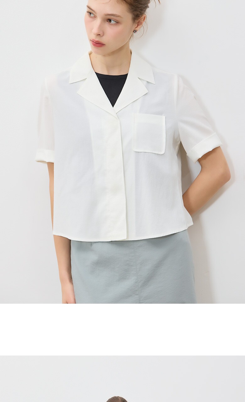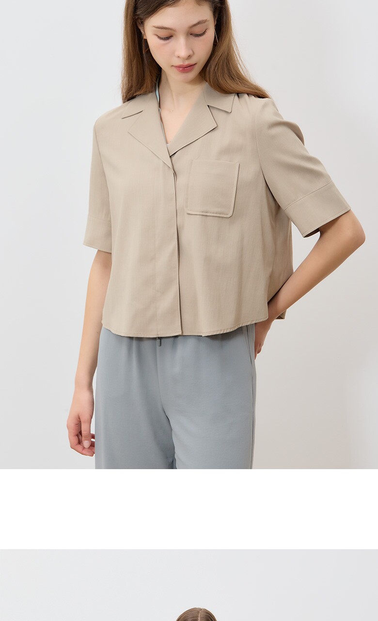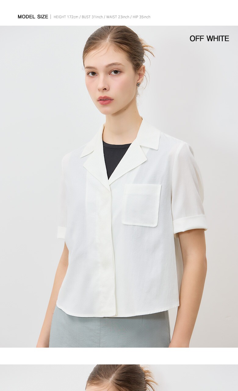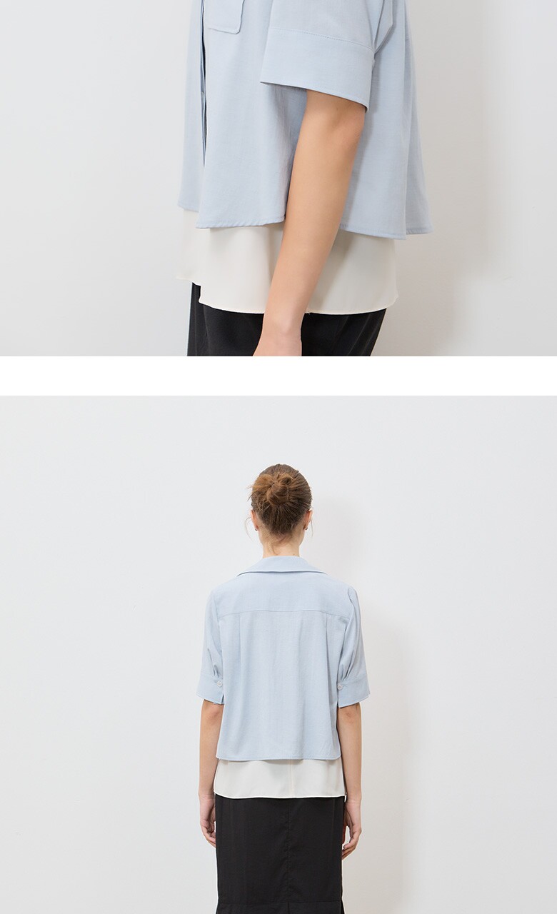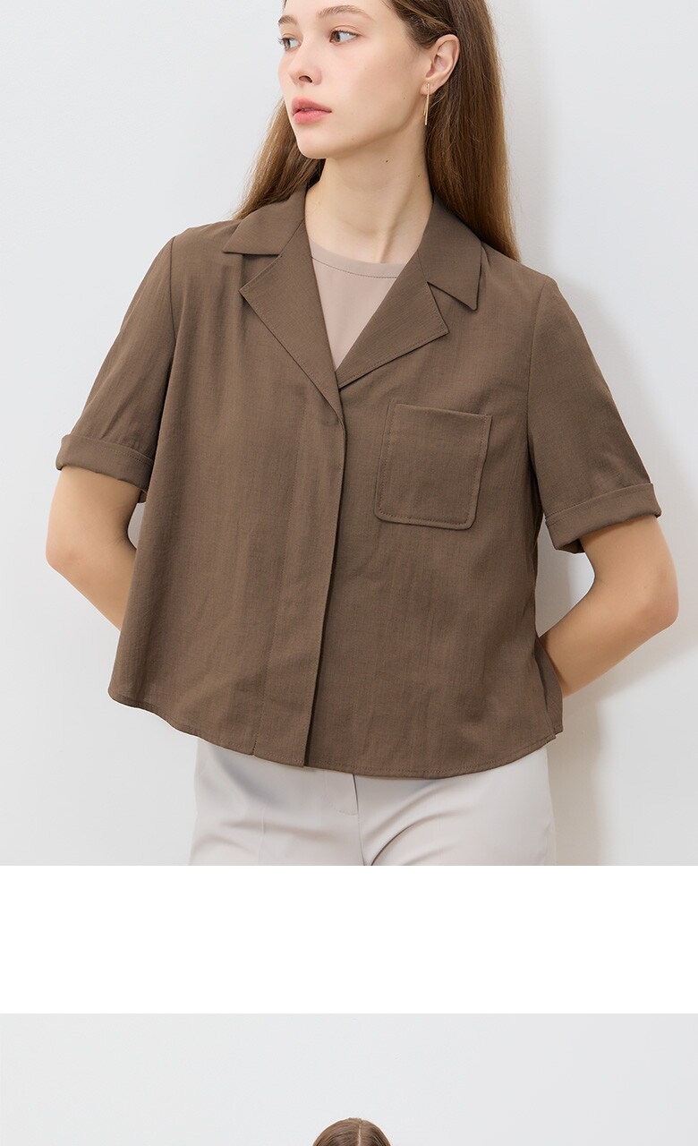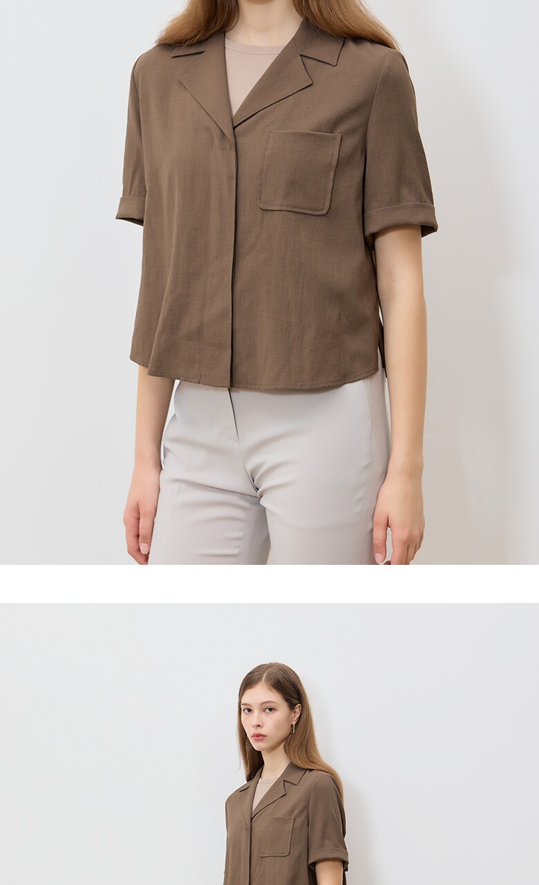 [쉬즈미스(SHESMISS)] 고품격 히든버튼 카라 셔츠형 반팔 재킷 (택가격: 248000원)