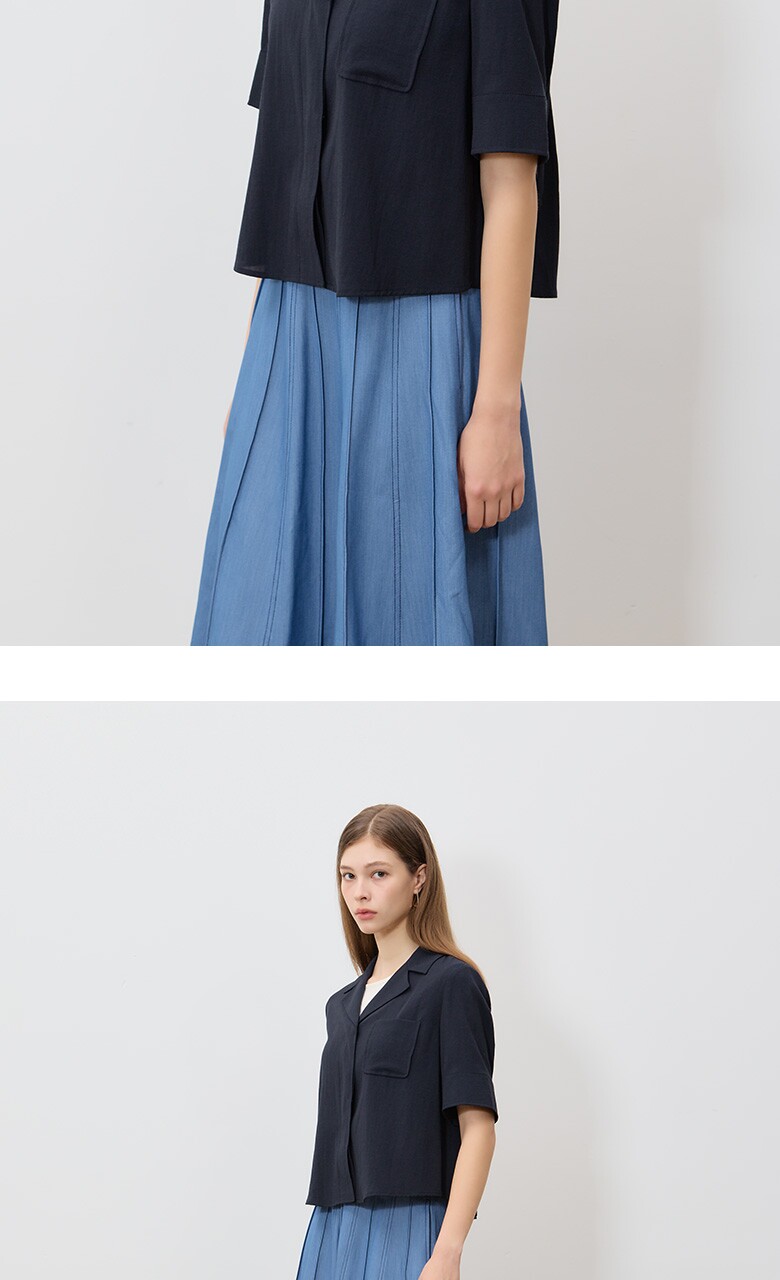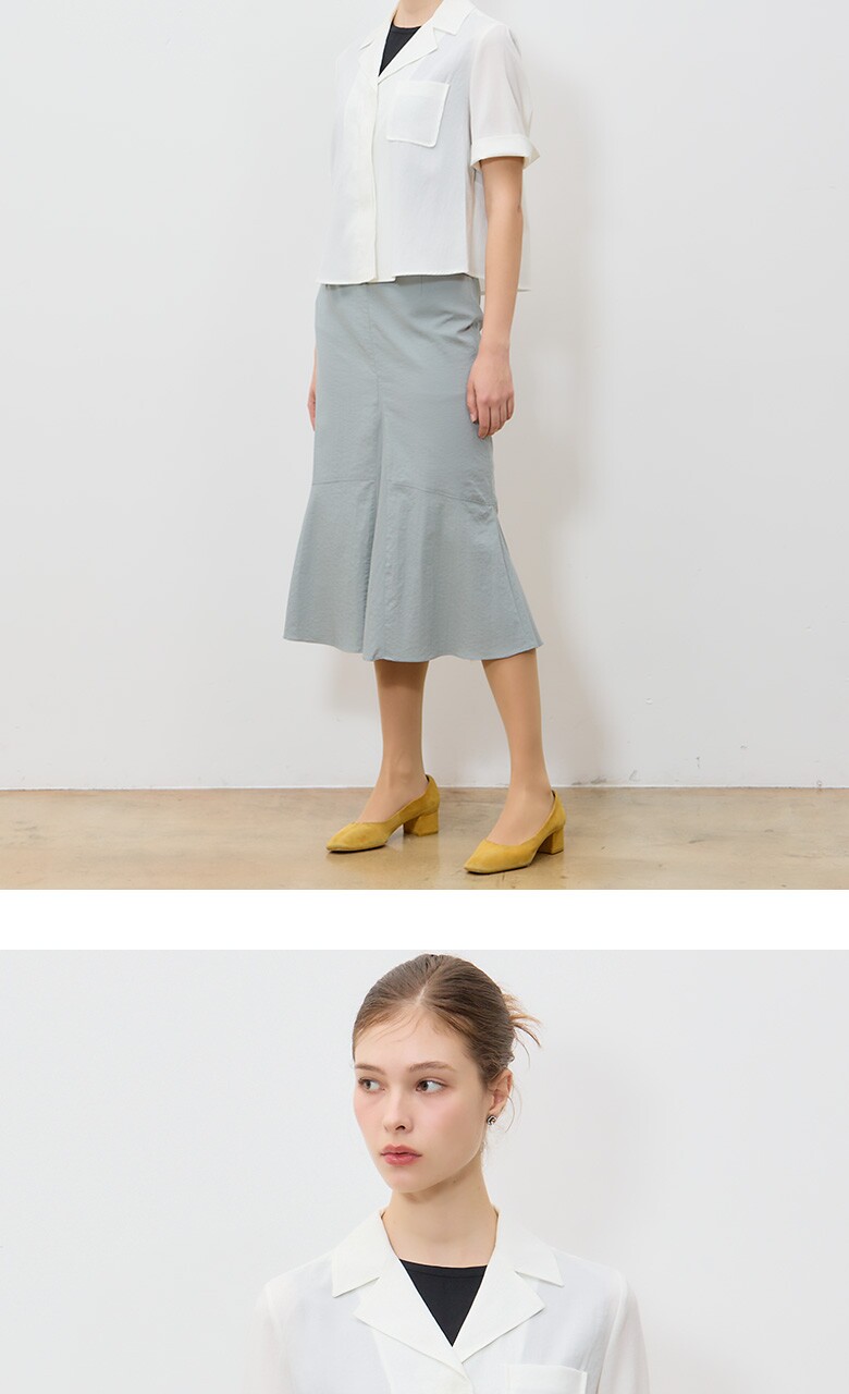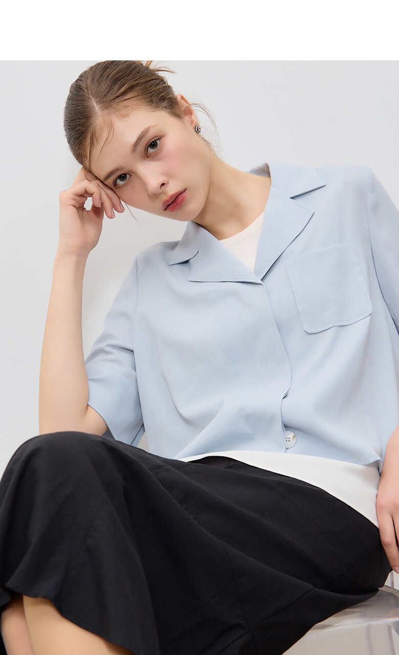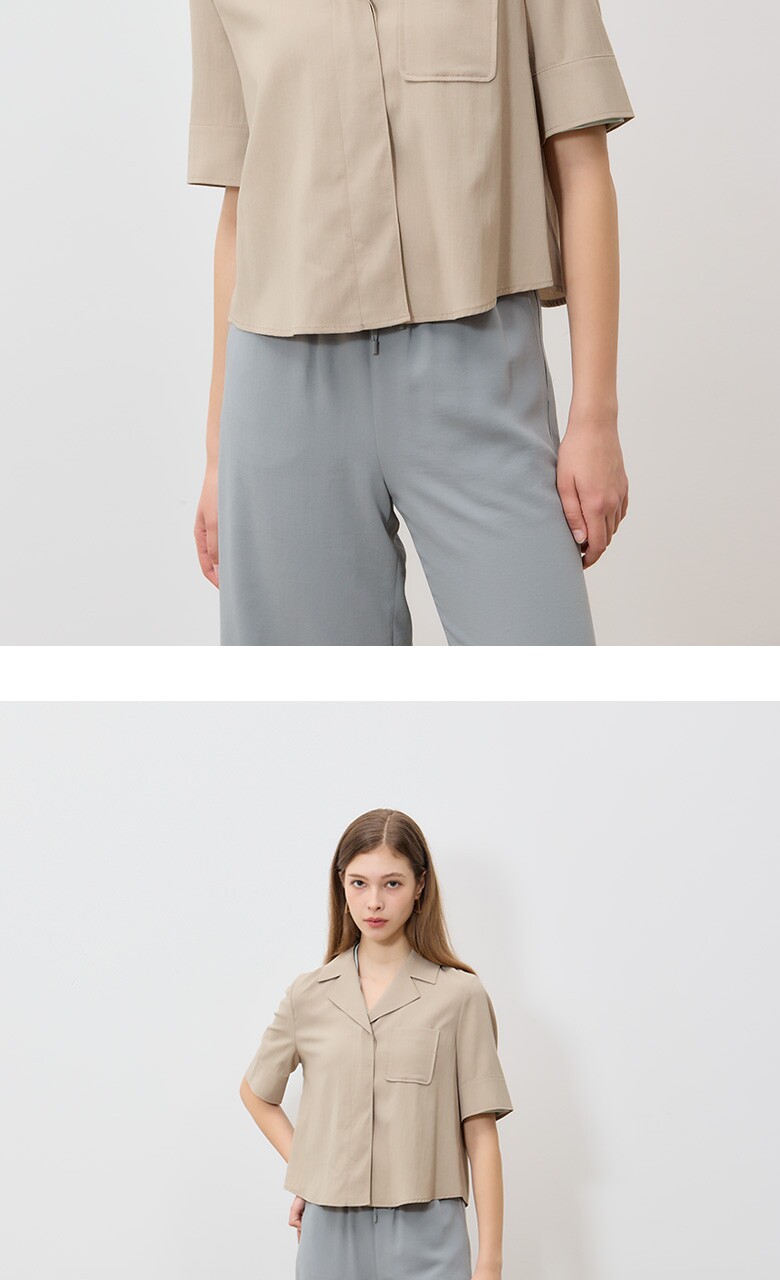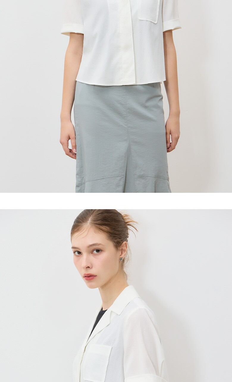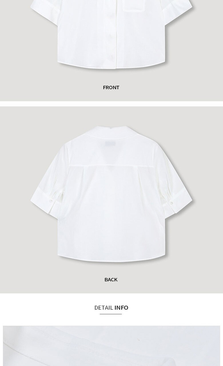[쉬즈미스(SHESMISS)] 고품격 히든버튼 카라 셔츠형 반팔 재킷 (택가격: 248000원)