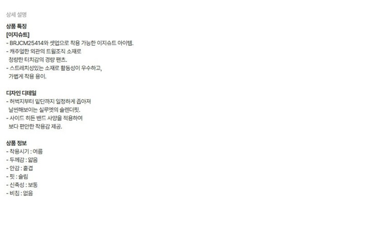 | 1. 제품 소재 (섬유의 조성 또는 혼용률을 백분율로 표시, 기능성인 경우 성적서 또는 허가서) | 상품상세참조 |
