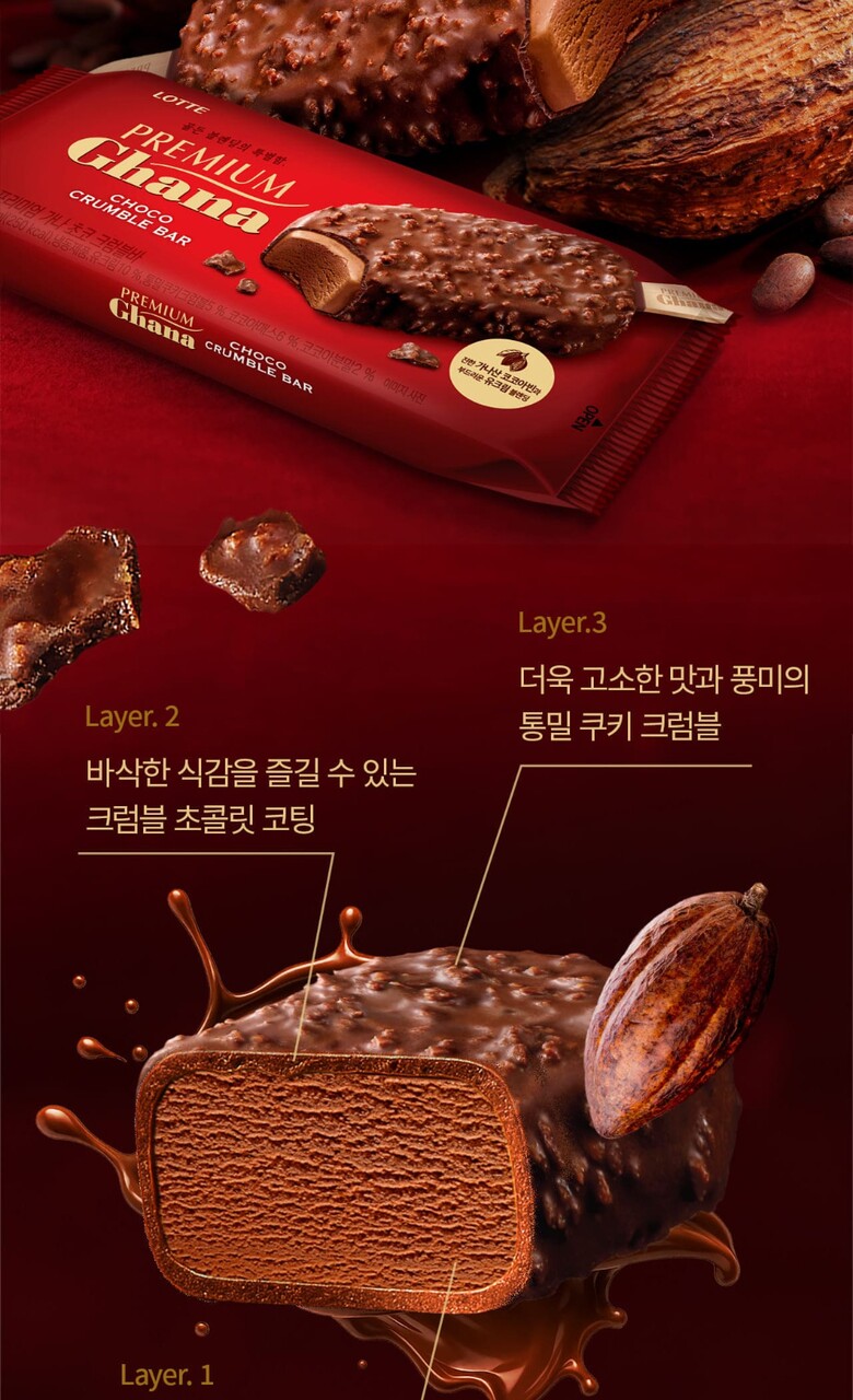 [롯데] 가나 아이스 초코 크럼블 바 80ml 16개 세트