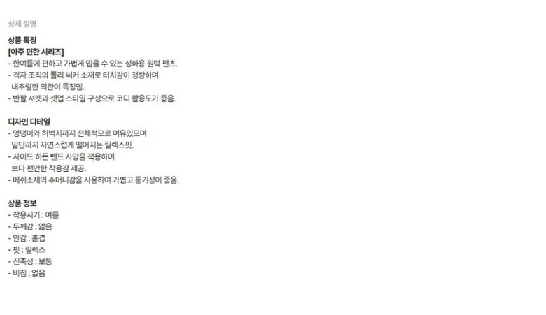 | 1. 제품 소재 (섬유의 조성 또는 혼용률을 백분율로 표시, 기능성인 경우 성적서 또는 허가서) | 상품상세참조 |