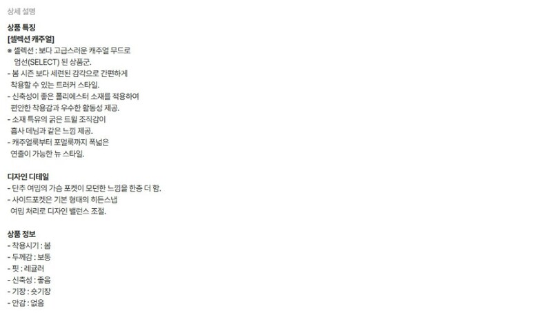 | 6. 세탁방법 및 취급시 주의사항 | 상품상세참조 |