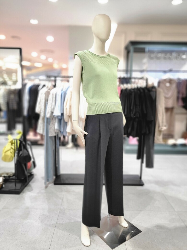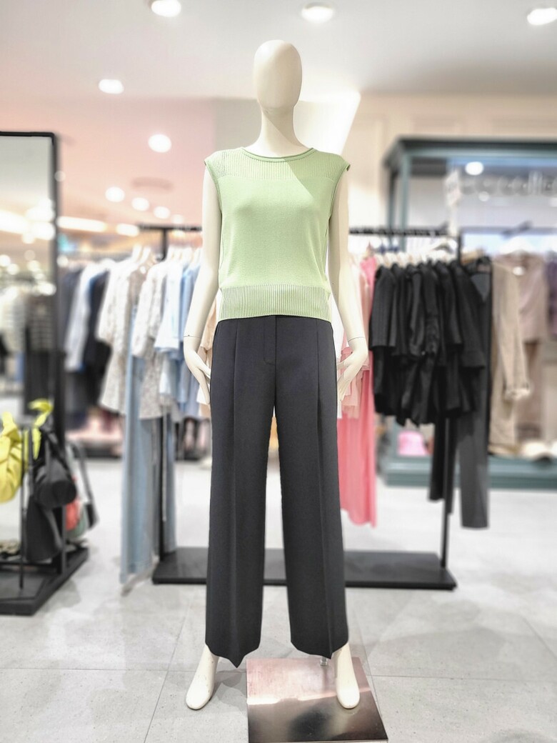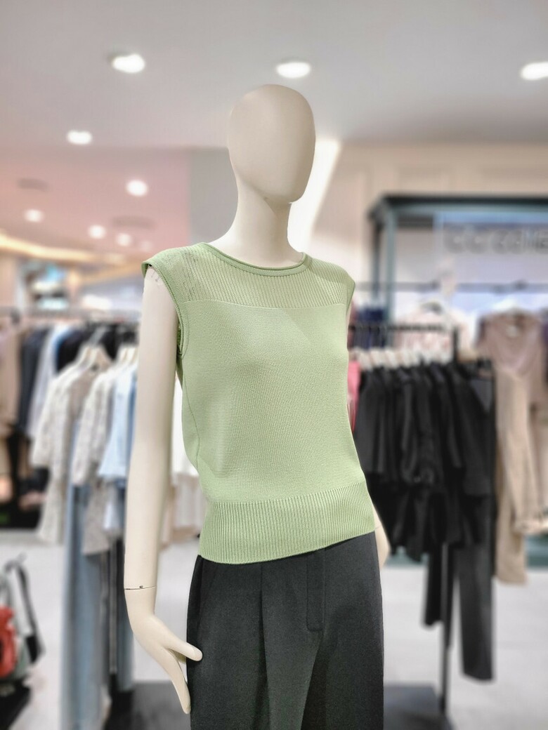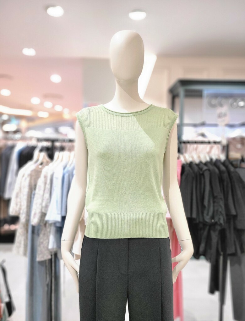 텍스쳐 블록 슬리브리스 니트 탑입니다.