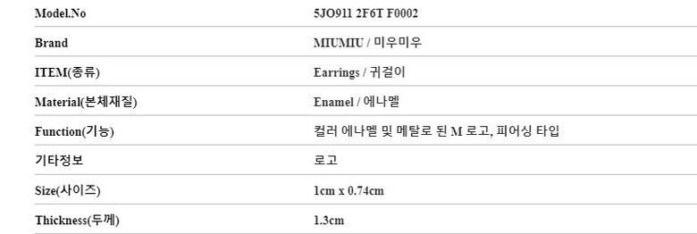 미우미우 5JO911 2F6T F0002 로고 에나멜 귀걸이