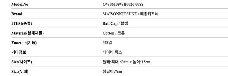 메종키츠네 OW06108WB0026 0088 베이비 폭스 볼캡