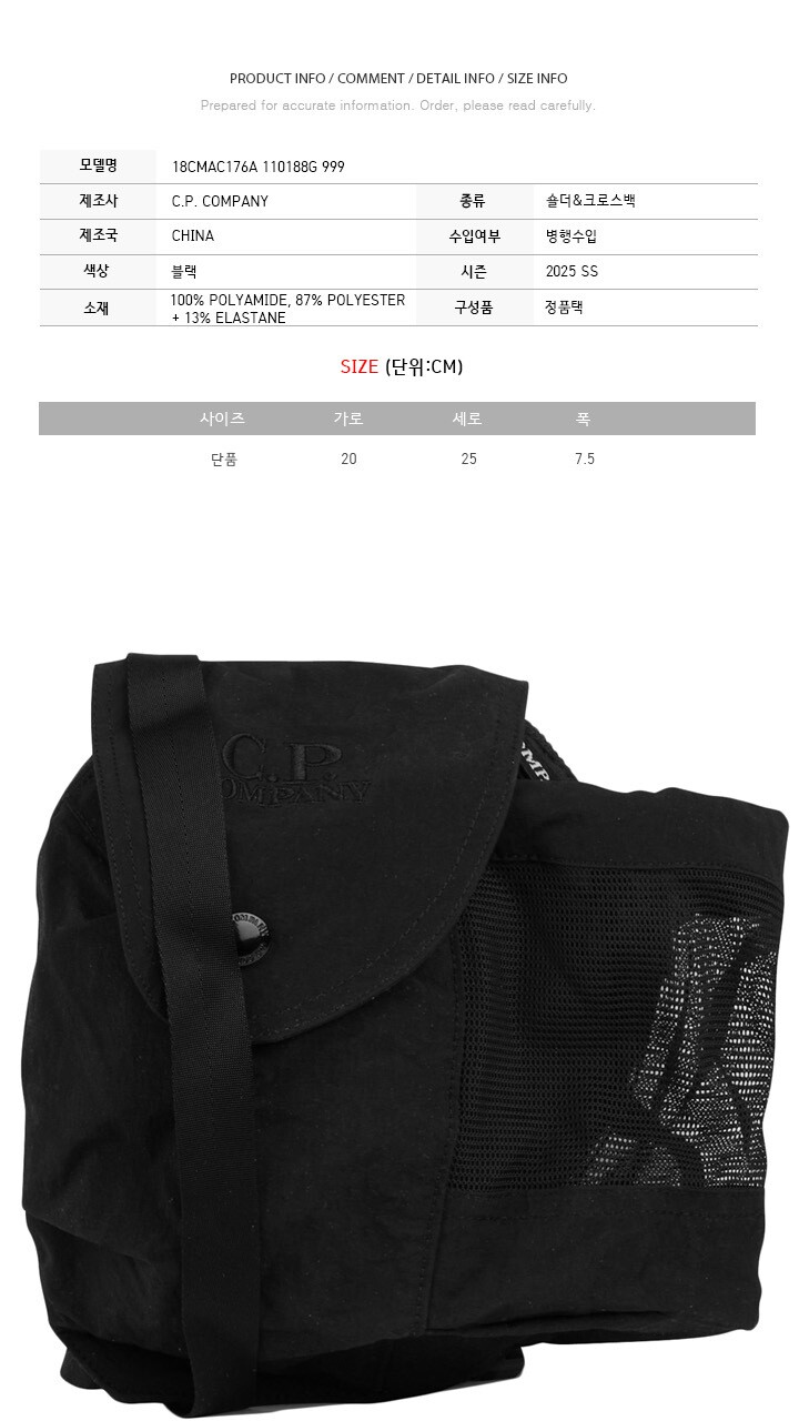CP 25SS 자수 로고 미니 숄더크로스백 블랙 18CMAC176A 110188G 999