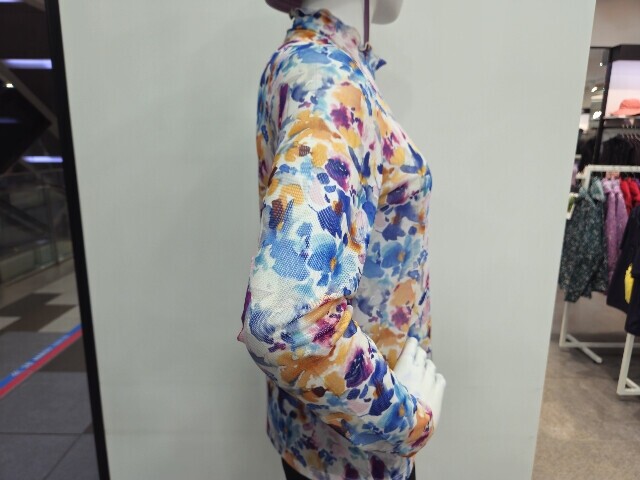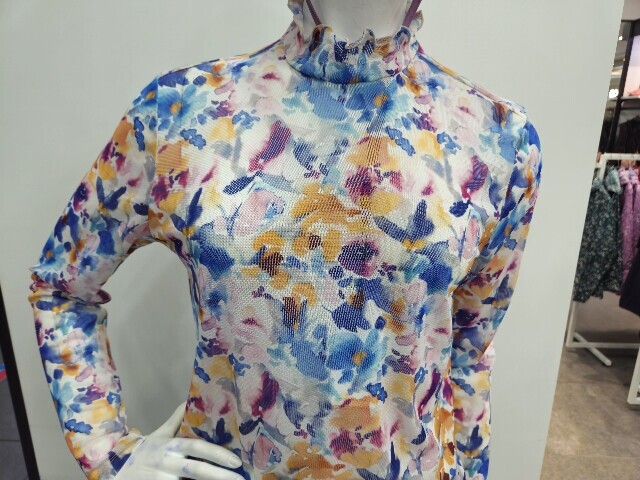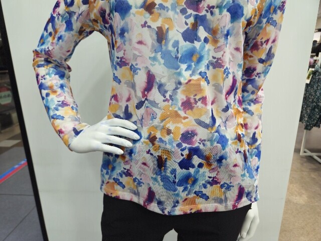 WN2WTTR424 PP 여름 여성 메쉬 꽃 프린트 긴팔 티셔츠