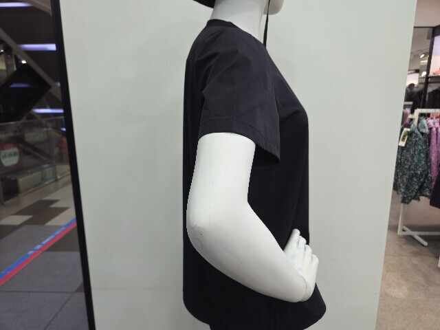 WN2WCTR464 BK 여성 여름 베이직 우븐 반팔 라운드 티셔츠
