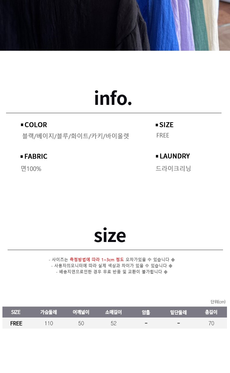 • 처음 배송된 상품상태와 다를 경우(세탁/착용 후 외출하신 경우) 반품이 불가합니다.