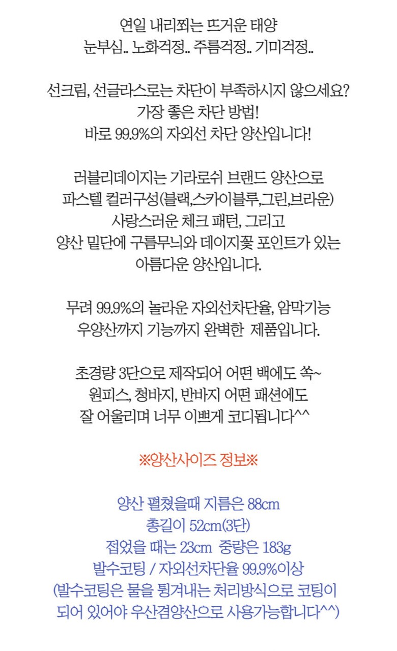 기라로쉬의 감성을 담은 체크데이지 암막양산입니다.