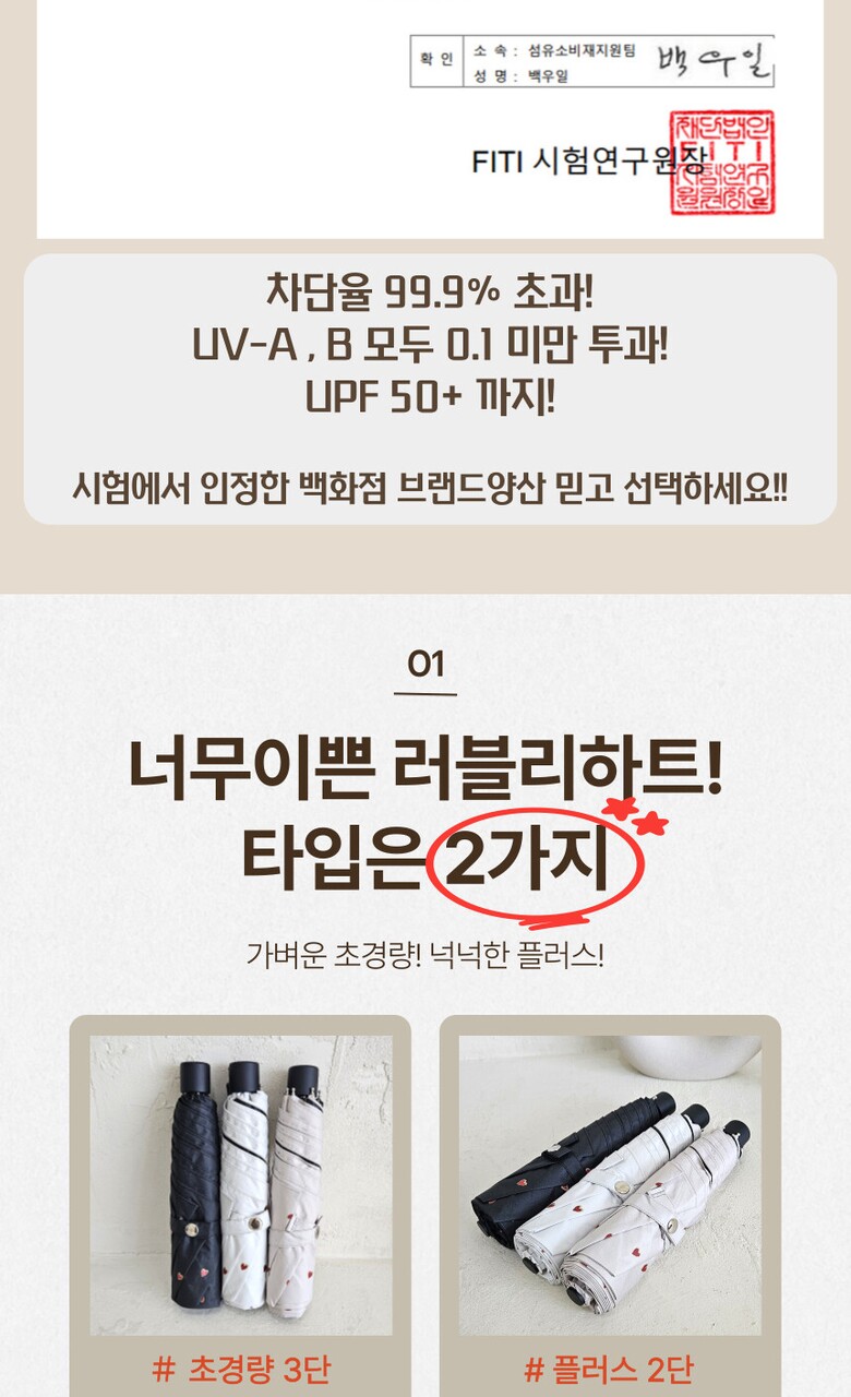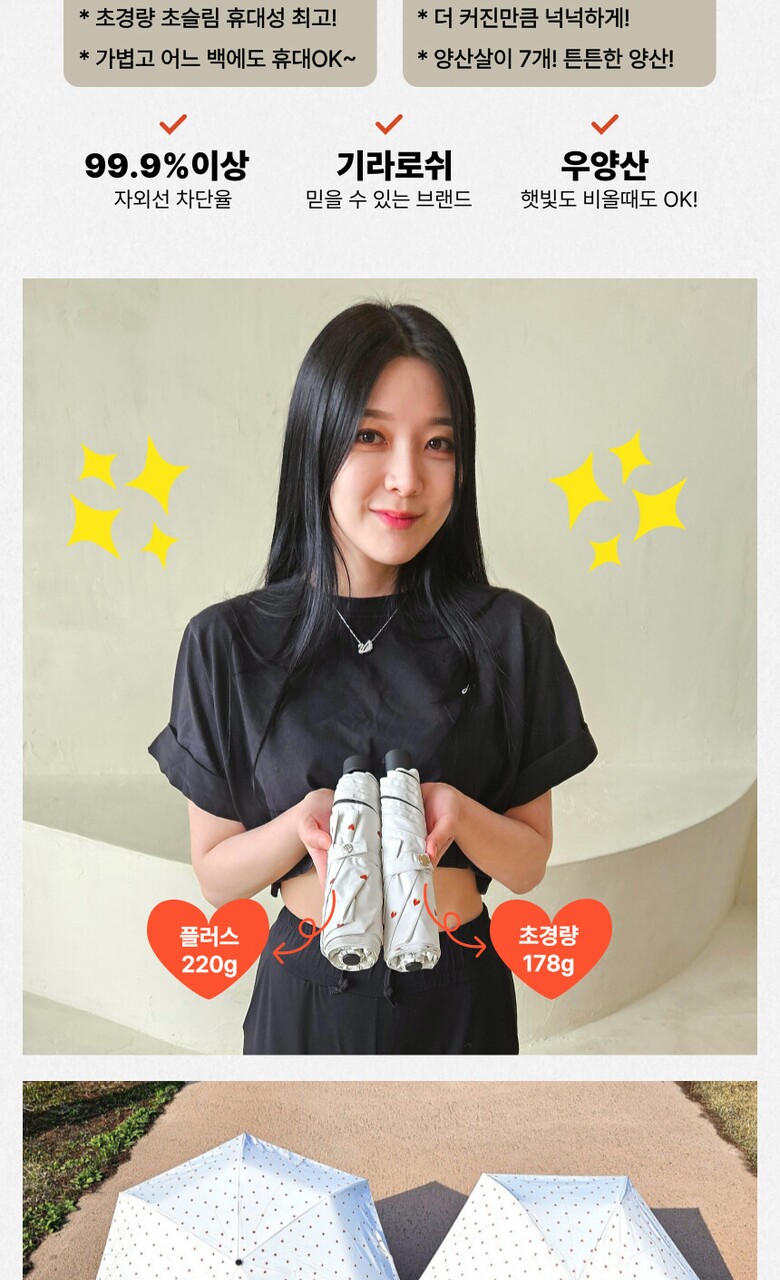 러블리하트 기라로쉬 암막 자외선차단율 99.9% 우양산 20대양산 플러스사이즈