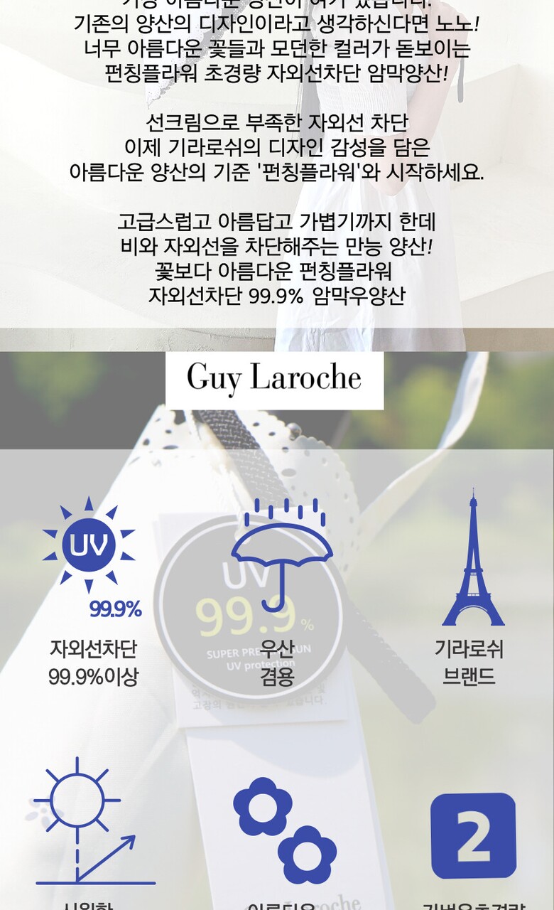 프랑스 기라로쉬의 감성을 담은 펀칭플라워 암막양산입니다.