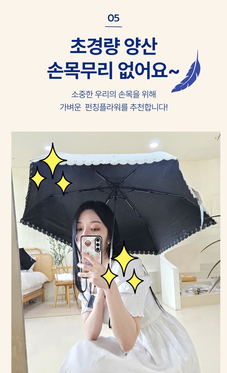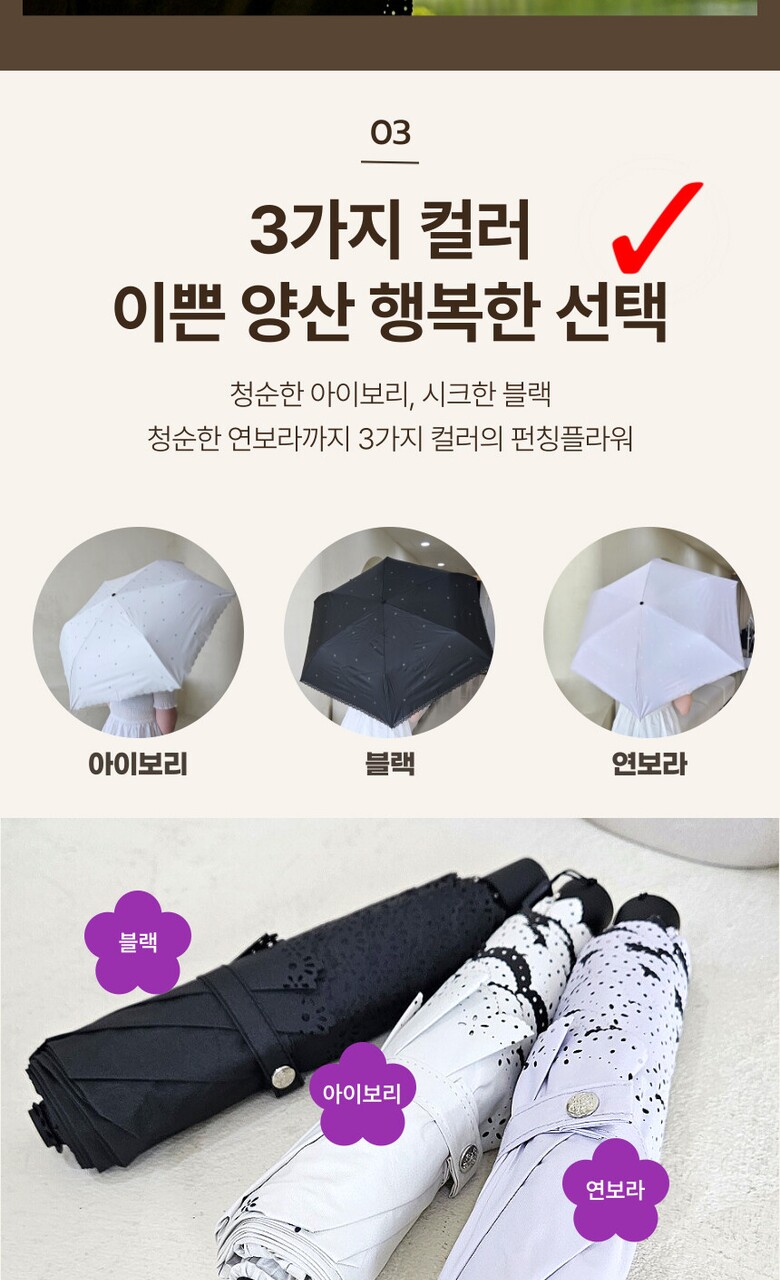 사랑스러운 플라워 패턴과 밑단의 펀칭플라워 마감으로 너무나 이쁜 양산~♡