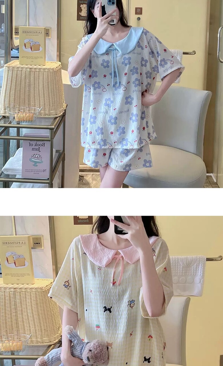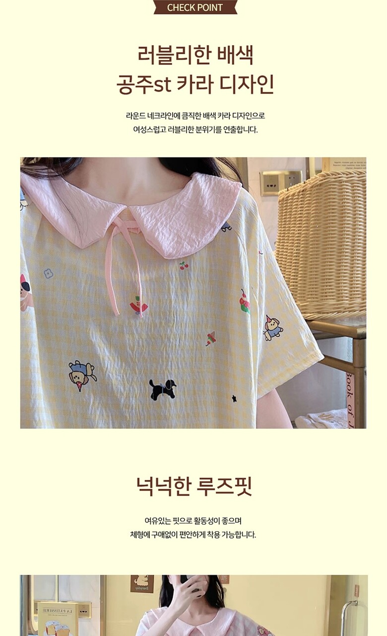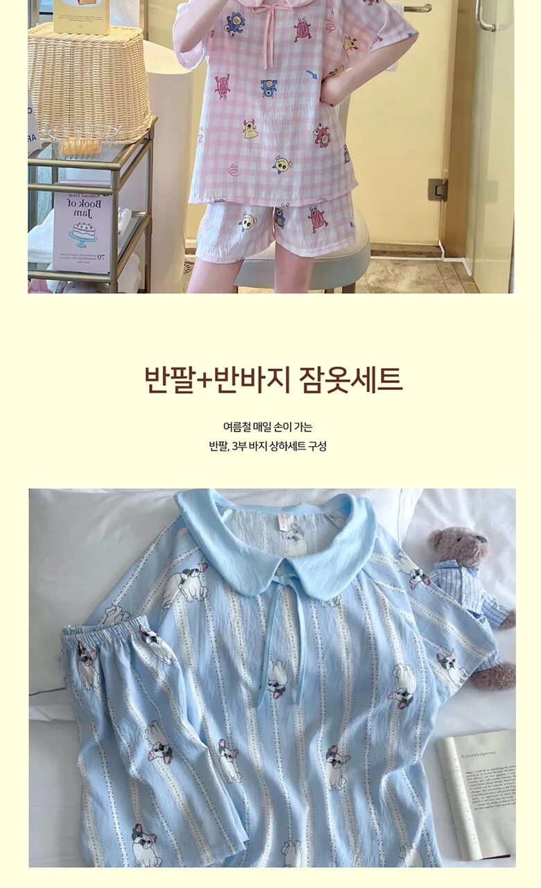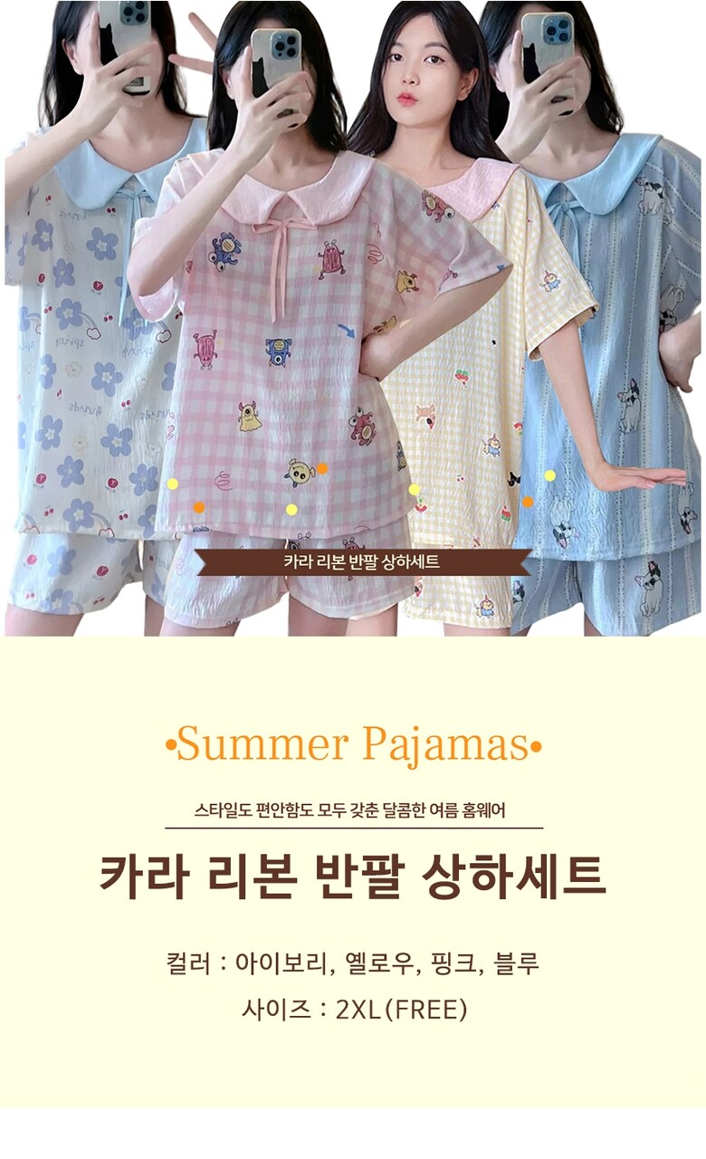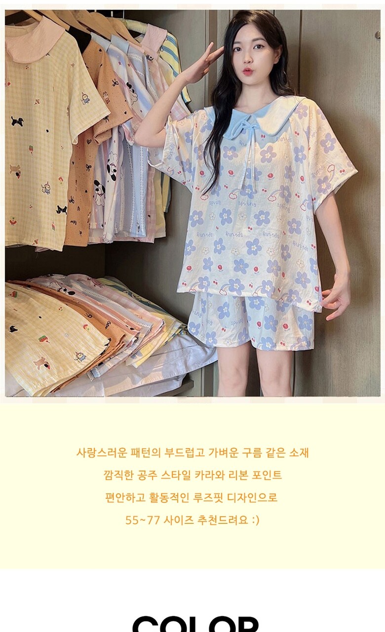 [상하세트] 공주풍 카라 반팔+반바지 잠옷세트 홈웨어 4컬러