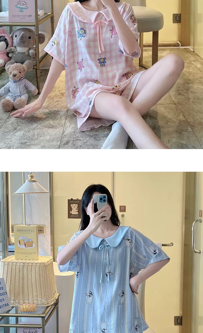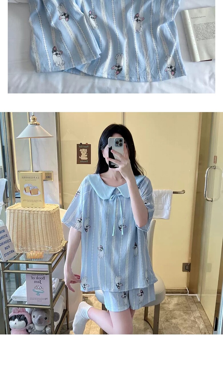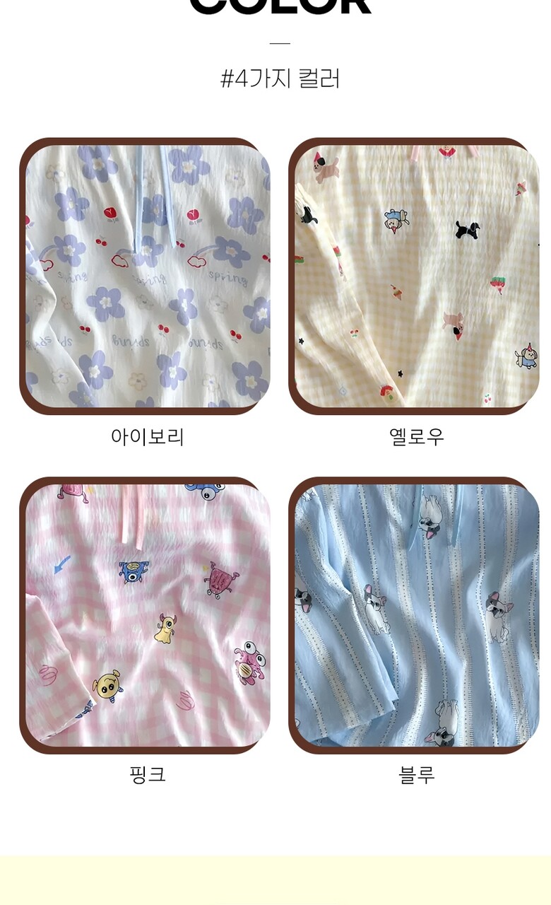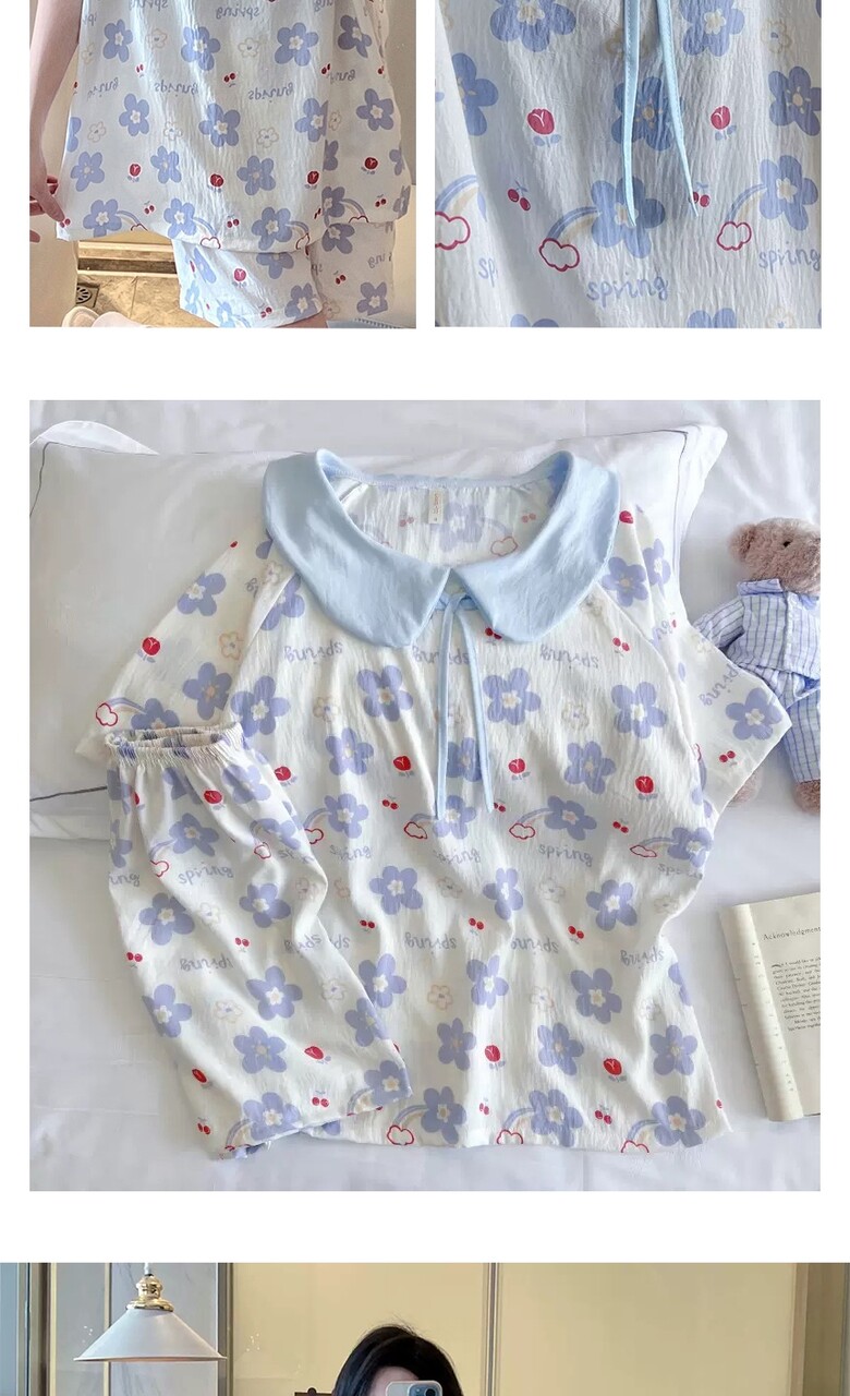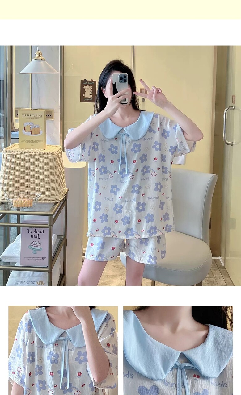 [상하세트] 공주풍 카라 반팔+반바지 잠옷세트 홈웨어 4컬러