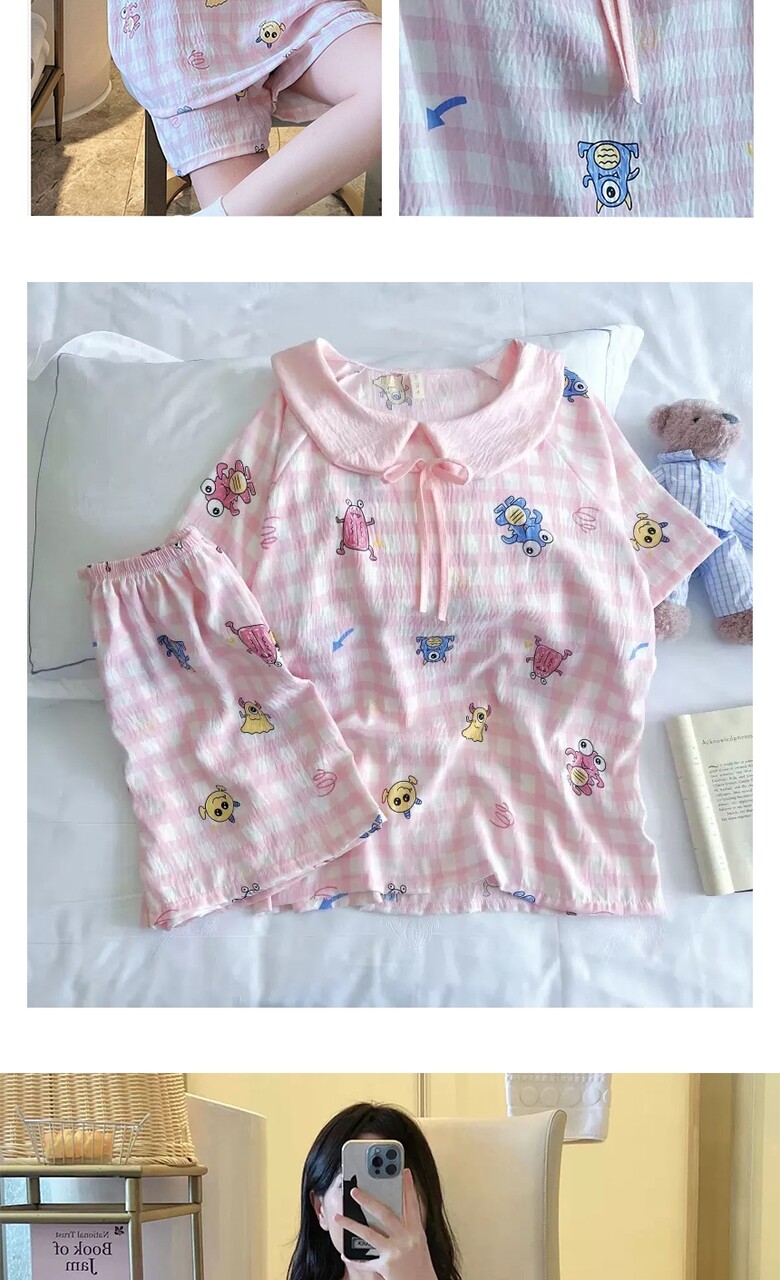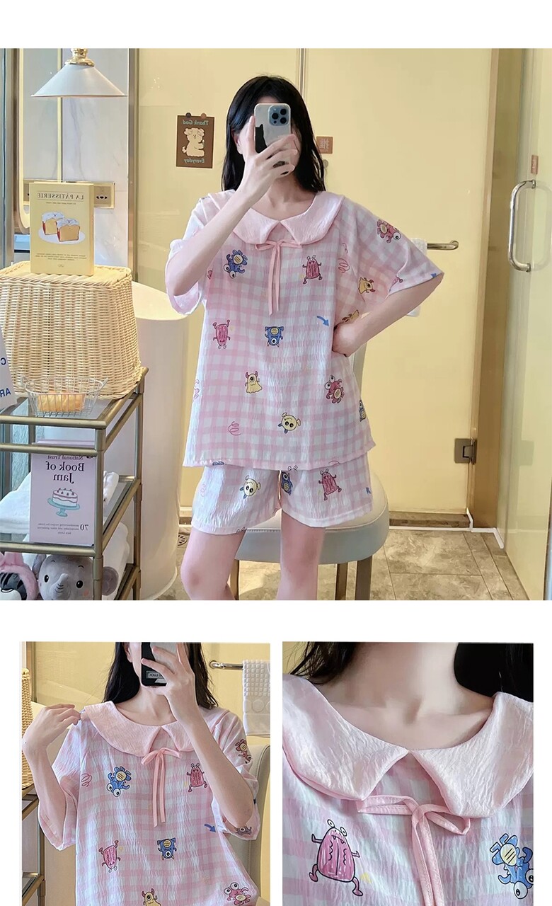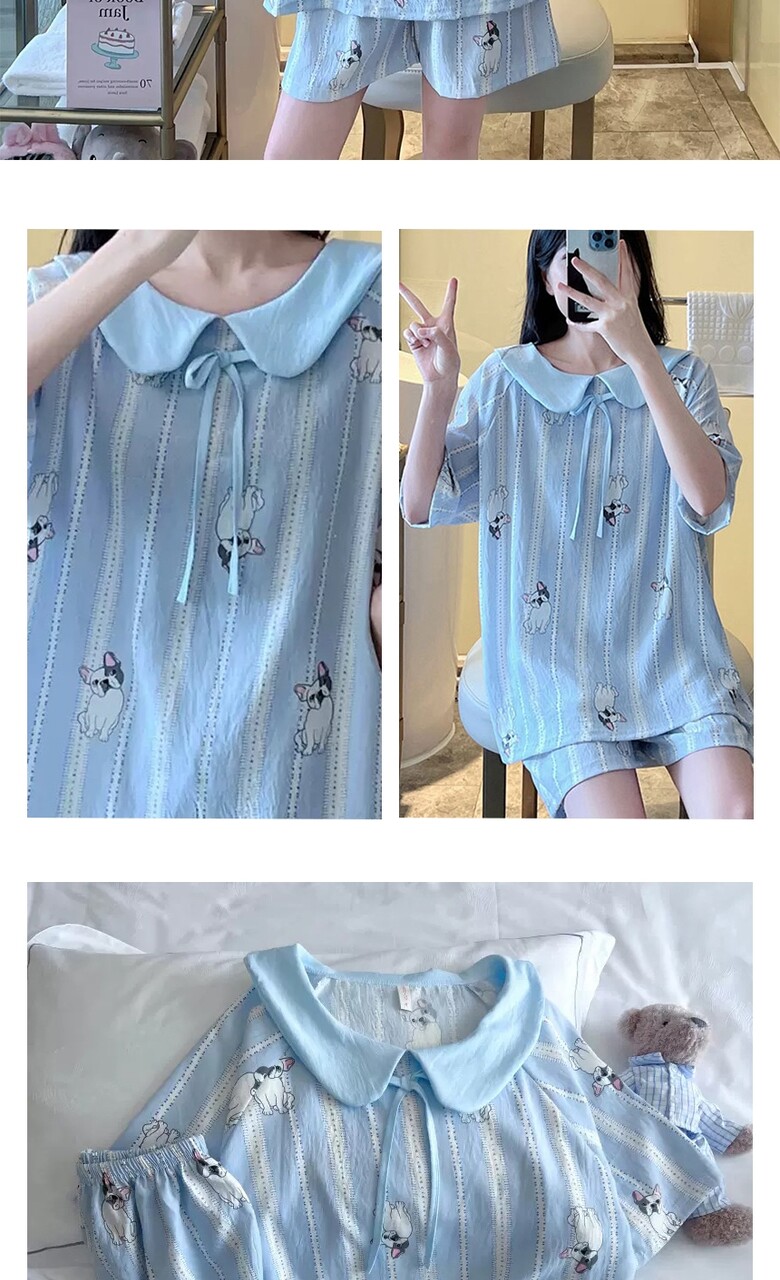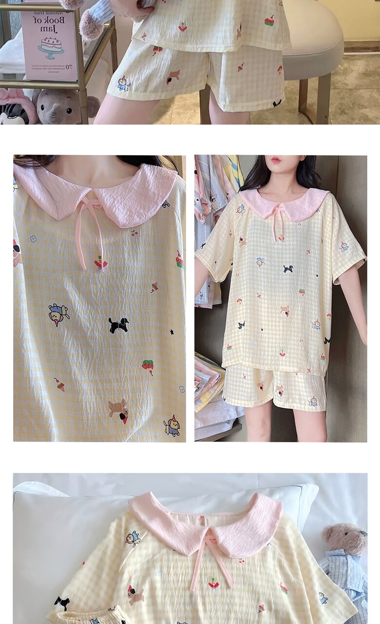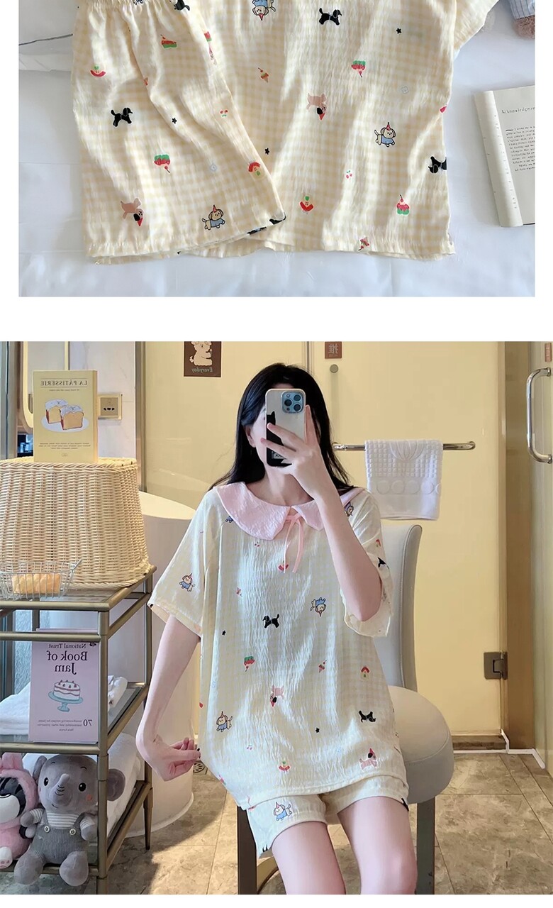 [상하세트] 공주풍 카라 반팔+반바지 잠옷세트 홈웨어 4컬러