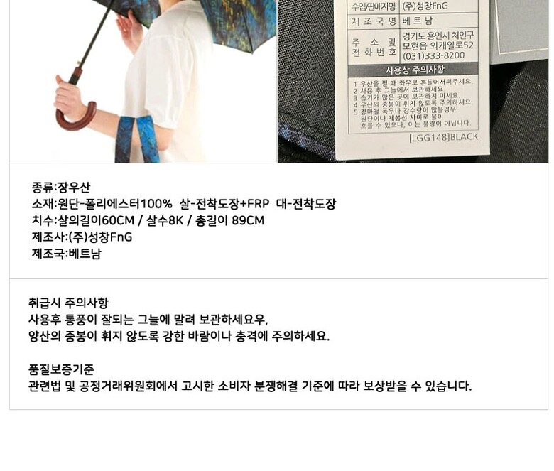 취급 시 주의사항 : 사용후 통풍이 잘되는 그늘에 말려 보관하세요우,양산의 중봉이 휘지 않도록 강한 바람이나 충격에 주의하세요