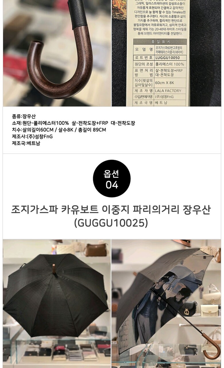 6. 취급시 주의사항 | 사용후 통풍이 잘되는 그늘에 말려 보관하세요우,양산의 중봉이 휘지 않도록 강한 바람이나 충격에 주의하세요 |
