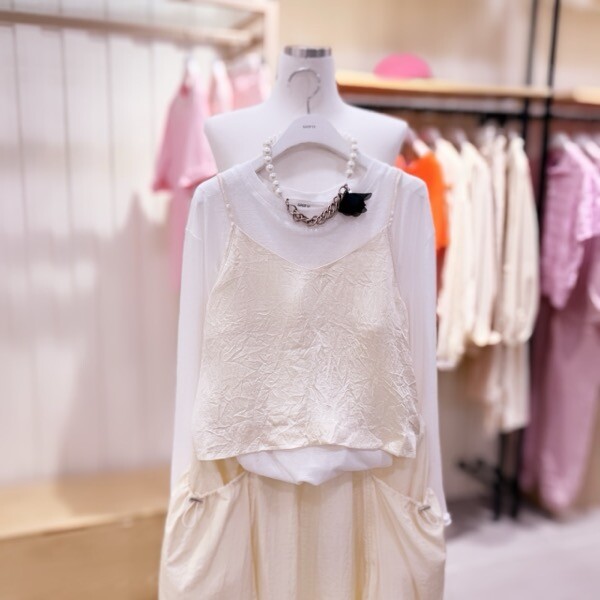 사틴 TOP 뷔스티에??기본 셔츠나 패턴이 있는 셔츠에도?코디하시기 좋구요.