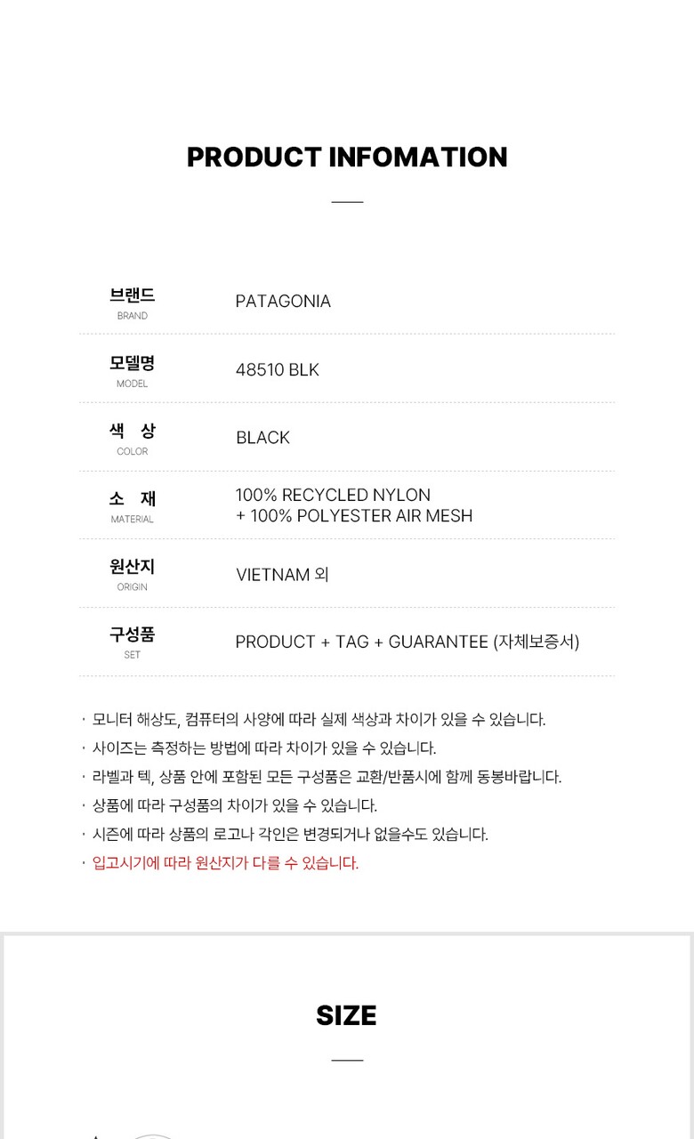 2. 소재 | 리사이클드 나일론 100% + 폴리 에어메쉬 100% |